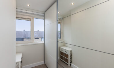 Ruime overloop welke toegang geeft tot de drie slaapkamers en badkamer. Dankzij de lichtkoepel komt er prettig daglicht binnen. Aan de voorzijde gaat de overloop over in een kamer welke momenteel in gebruik is als dressing (circa 2.31 x 1.78m) maar hier kunt u ook een aparte slaapkamer creëren. Daarnaast heeft u de aansluitingen voor de wasmachine en droger.