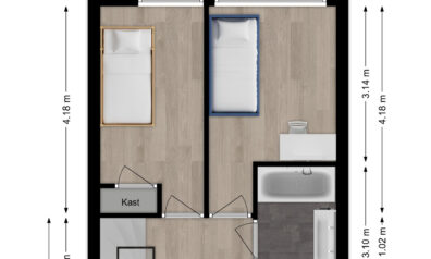 Maatvoering: Circa 2.58 x 4.18/3.14m