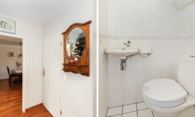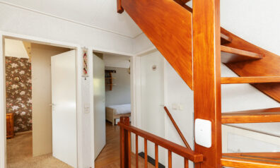 In de hal heeft u de meterkast, toiletruimte, trap naar de eerste verdieping en de toegang tot de woonkamer.