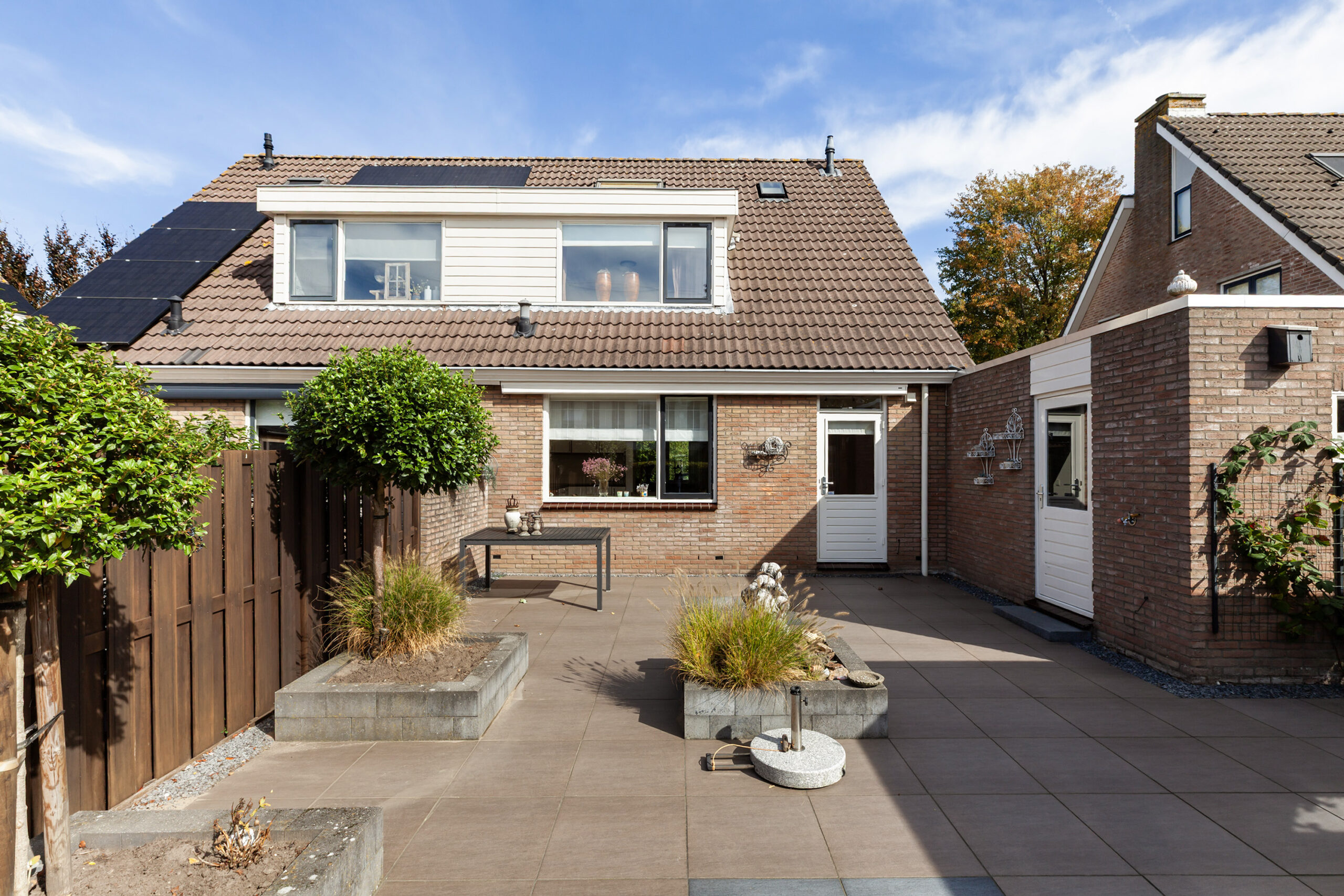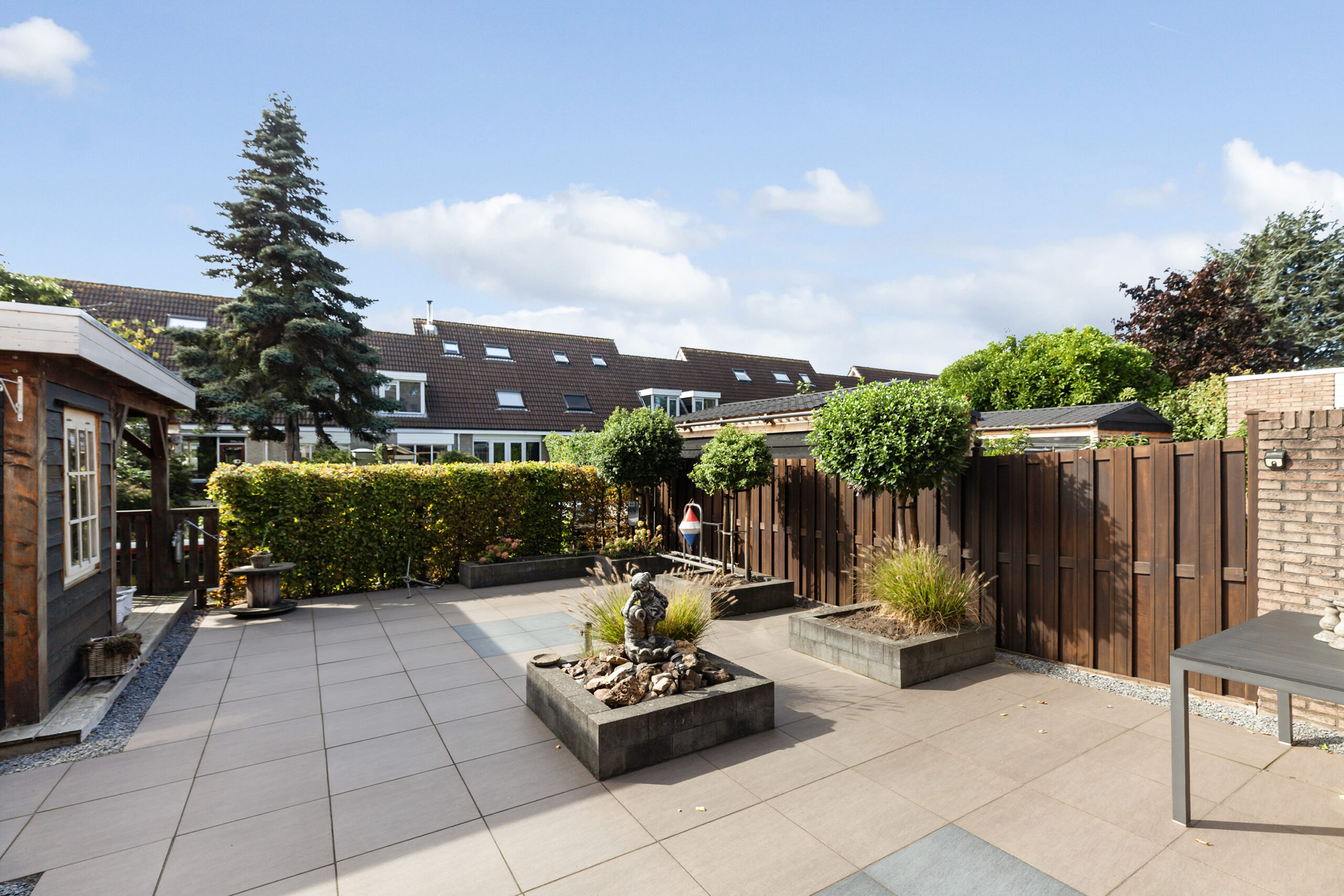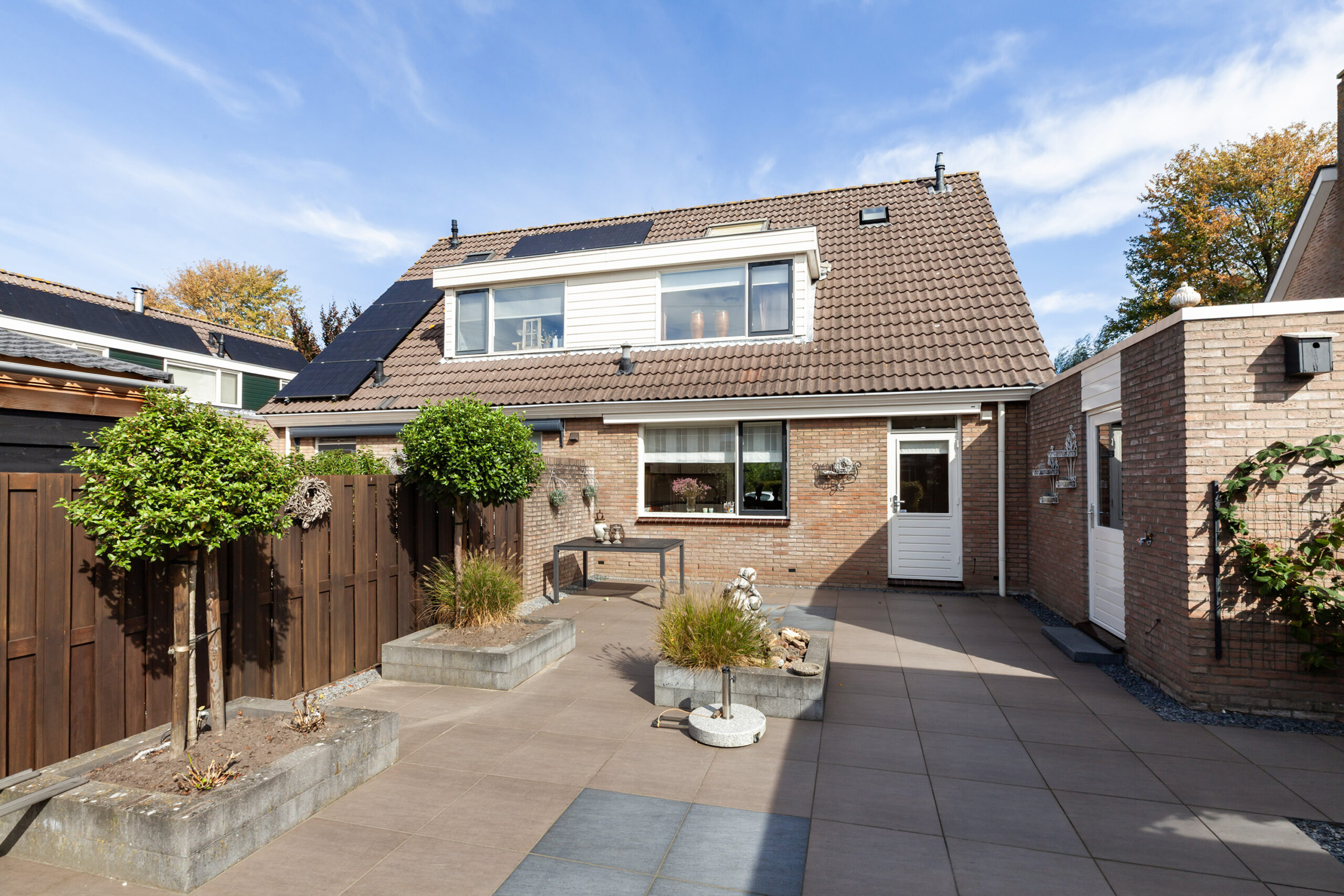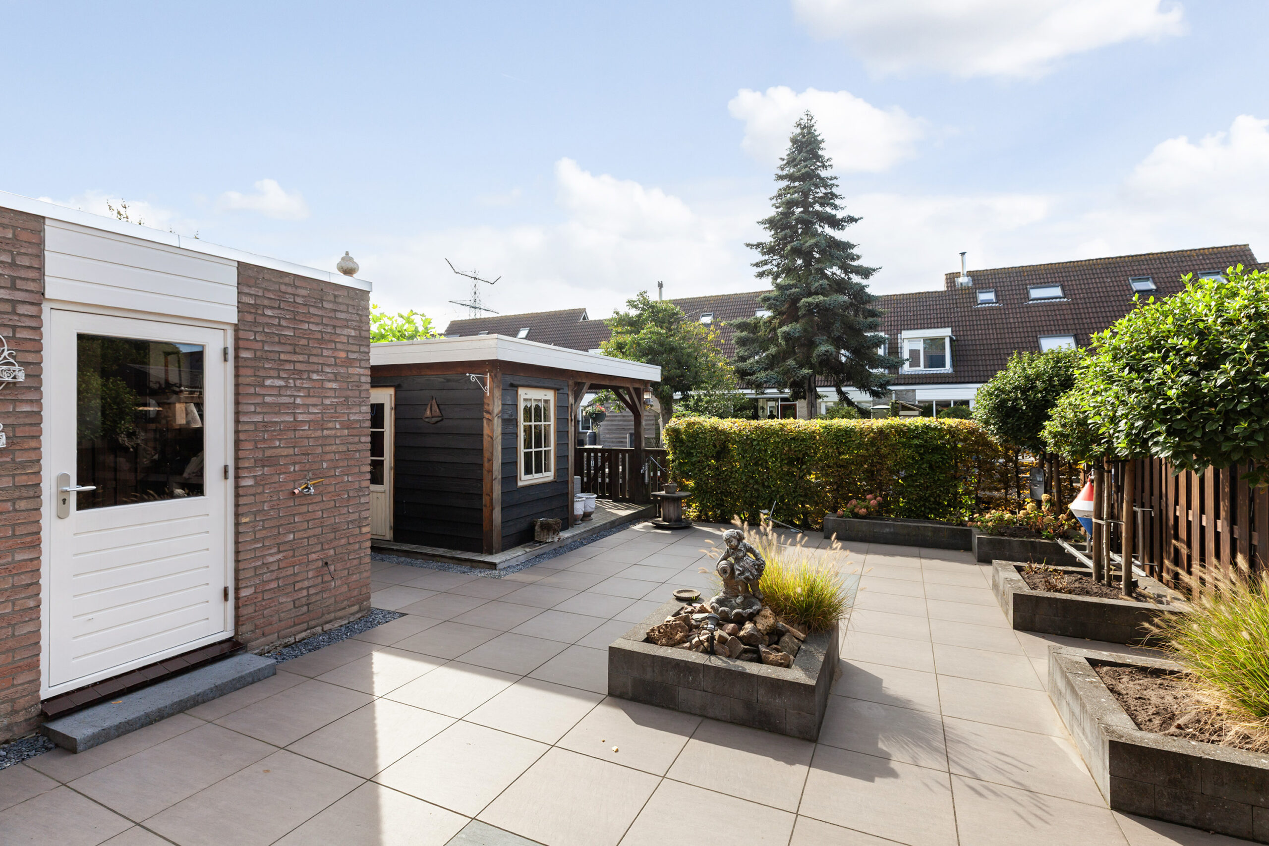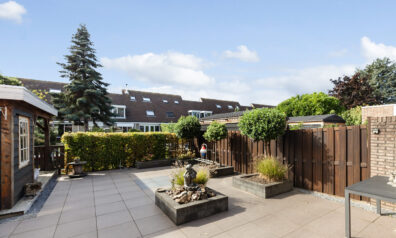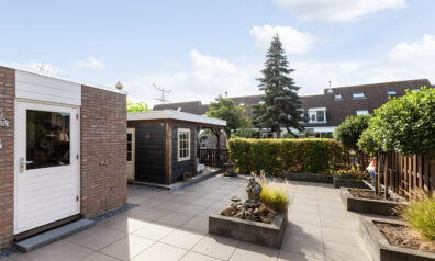 De woning ligt op een perceel van 310 m² met de achtertuin gesitueerd op het zuidwesten waardoor u al snel van de zon kunt genieten. De tuin is grotendeels aangelegd met tegels enkele beplantingen in de plantenborders. Over de volle breedte van de woning is een elektrisch zonnescherm. Achterin de tuin staat de houten berging van circa 2.91 x 1.76m met erachter een fijne overkapping, grenzend aan de vlonder bij het water. Een plekje waar het goed vertoeven is!