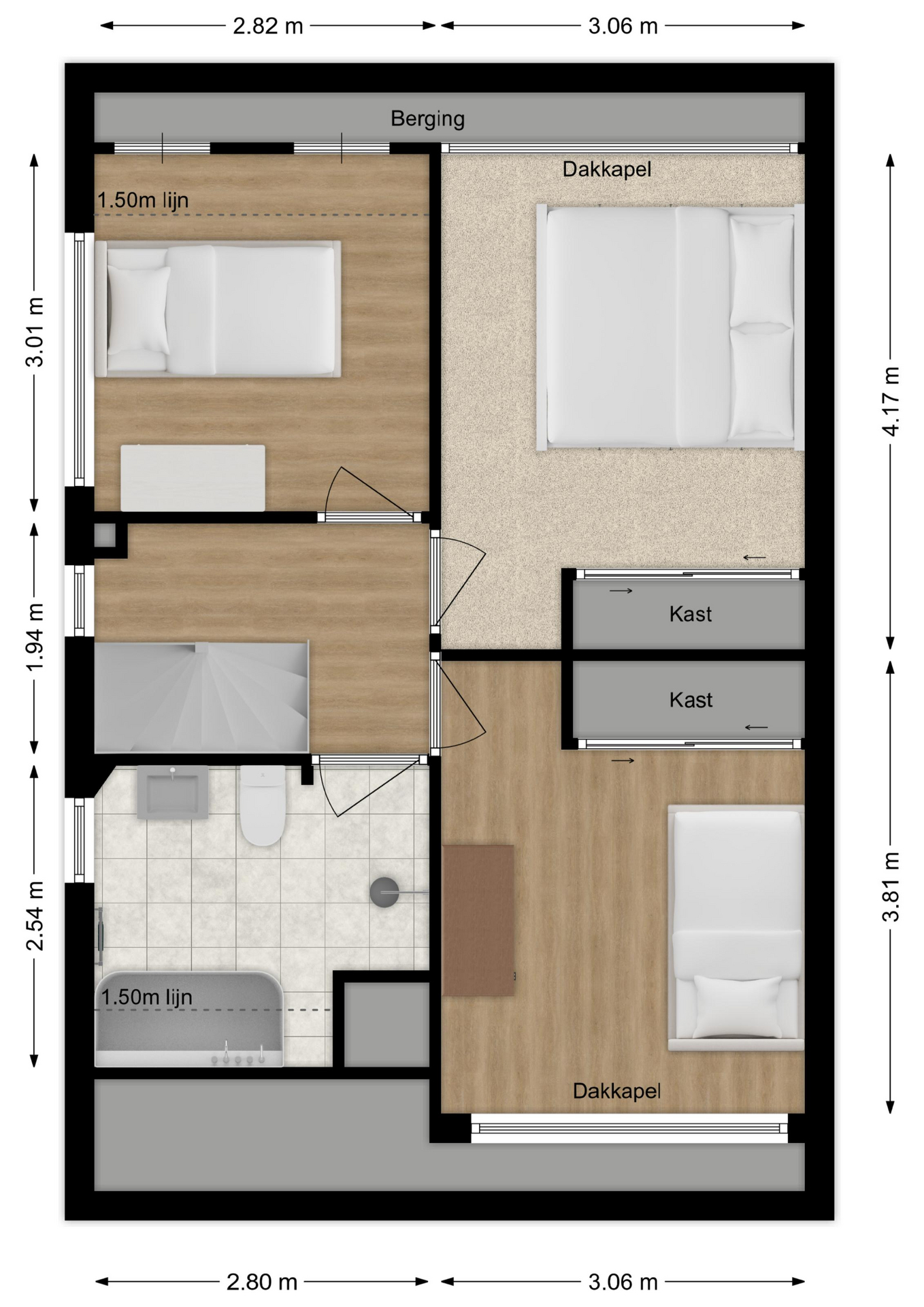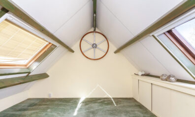 De laatste slaapkamer op deze verdieping bevindt zich aan de achterzijde en voorzien van bergruimte achter de knieschotten.