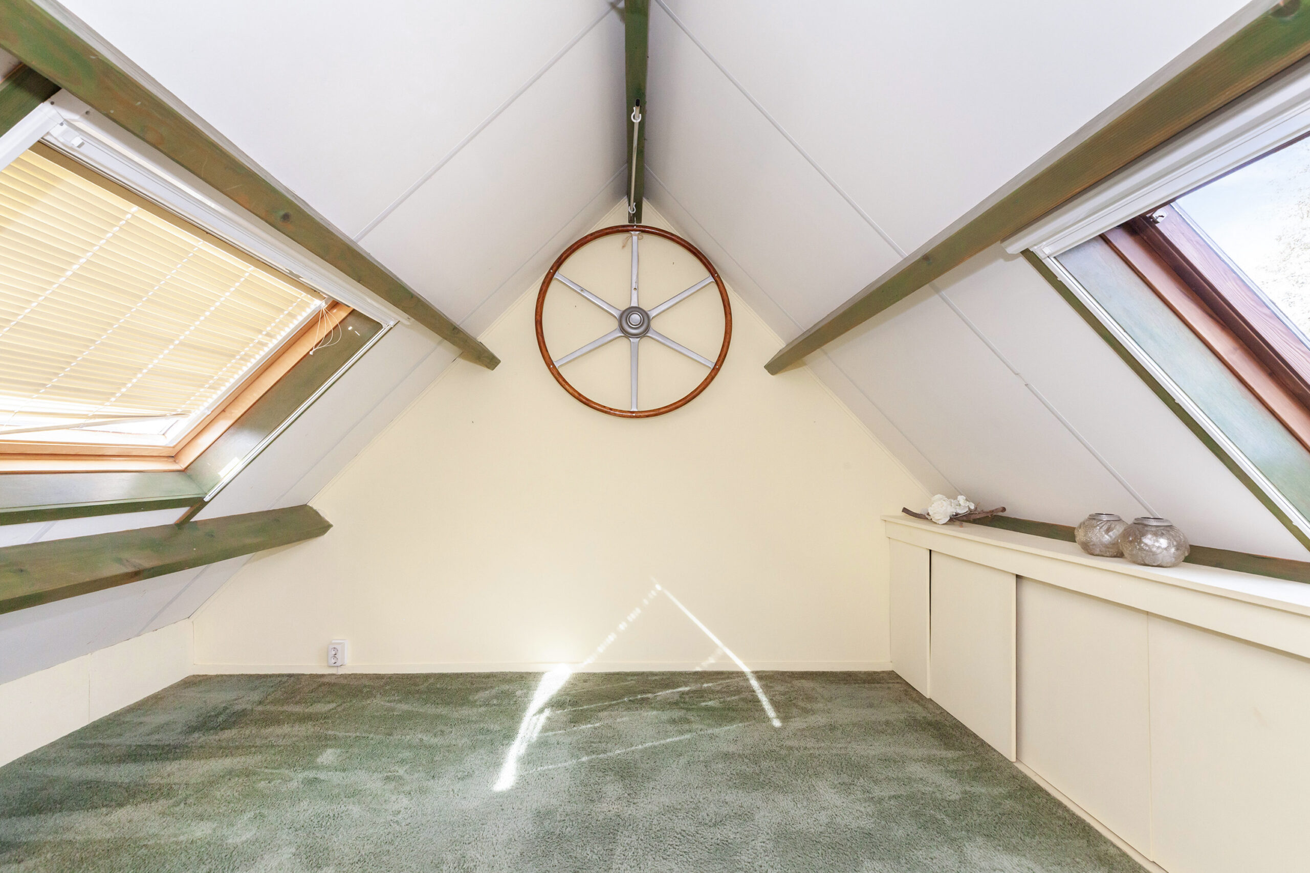 De zolderverdieping is opgedeeld in twee ruimtes. Allereerst komt u op de voorzolder waar u aan weerszijden bergruimte heeft onder het schuine dak. Verder hangt hier ook de C.V.-ketel en is er een airco. Loopt u verder dan komt u in een ruimte waar u aan de voorzijde bergruimte heeft onder het schuine dak. Deze kunt u gebruiken als slaap-, hobby- of werkkamer.