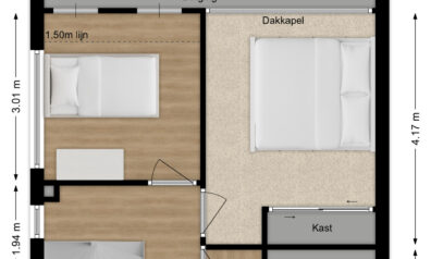 Deze (ouder) slaapkamer is aan de achterzijde gesitueerd. Er is naast het dakkapel ook een vaste kast van circa 2.05 x 0.68m.