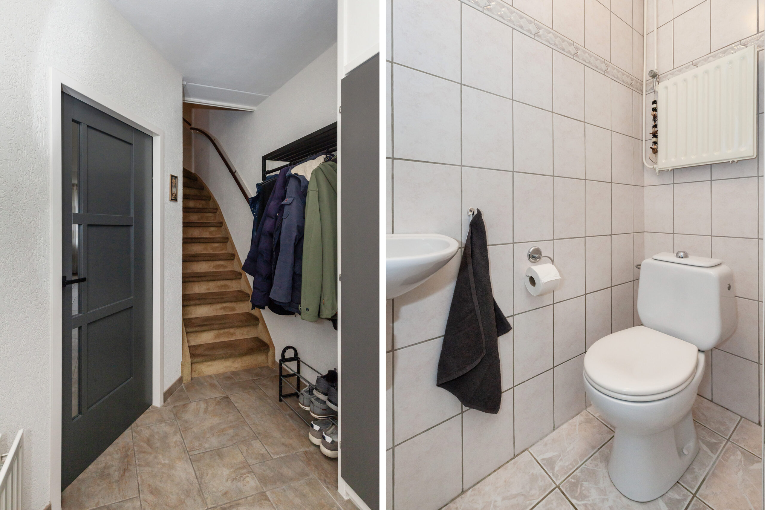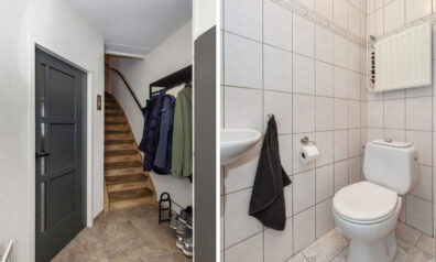 In de hal heeft u de toiletruimte, meterkast en trap naar de eerste verdieping. Daarnaast de toegang tot de woonkamer.