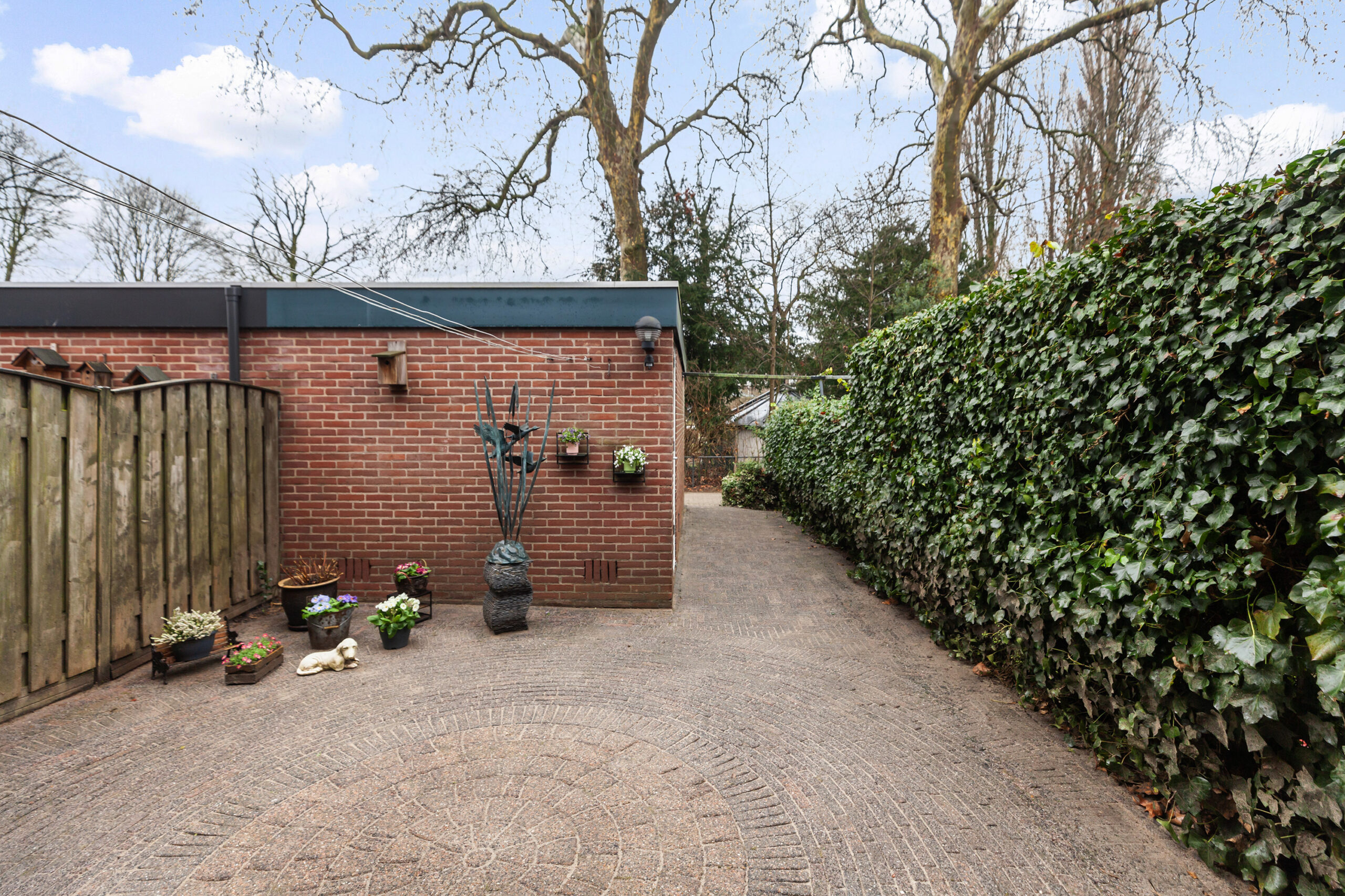 De woning is gelegen op een perceel van 135 m² met de achtertuin gesitueerd op het westen. De tuin is onderhoudsvriendelijk aangelegd met een frisgroene klimop langs de schuttingen. Er is een groot zonnescherm over de volle breedte.