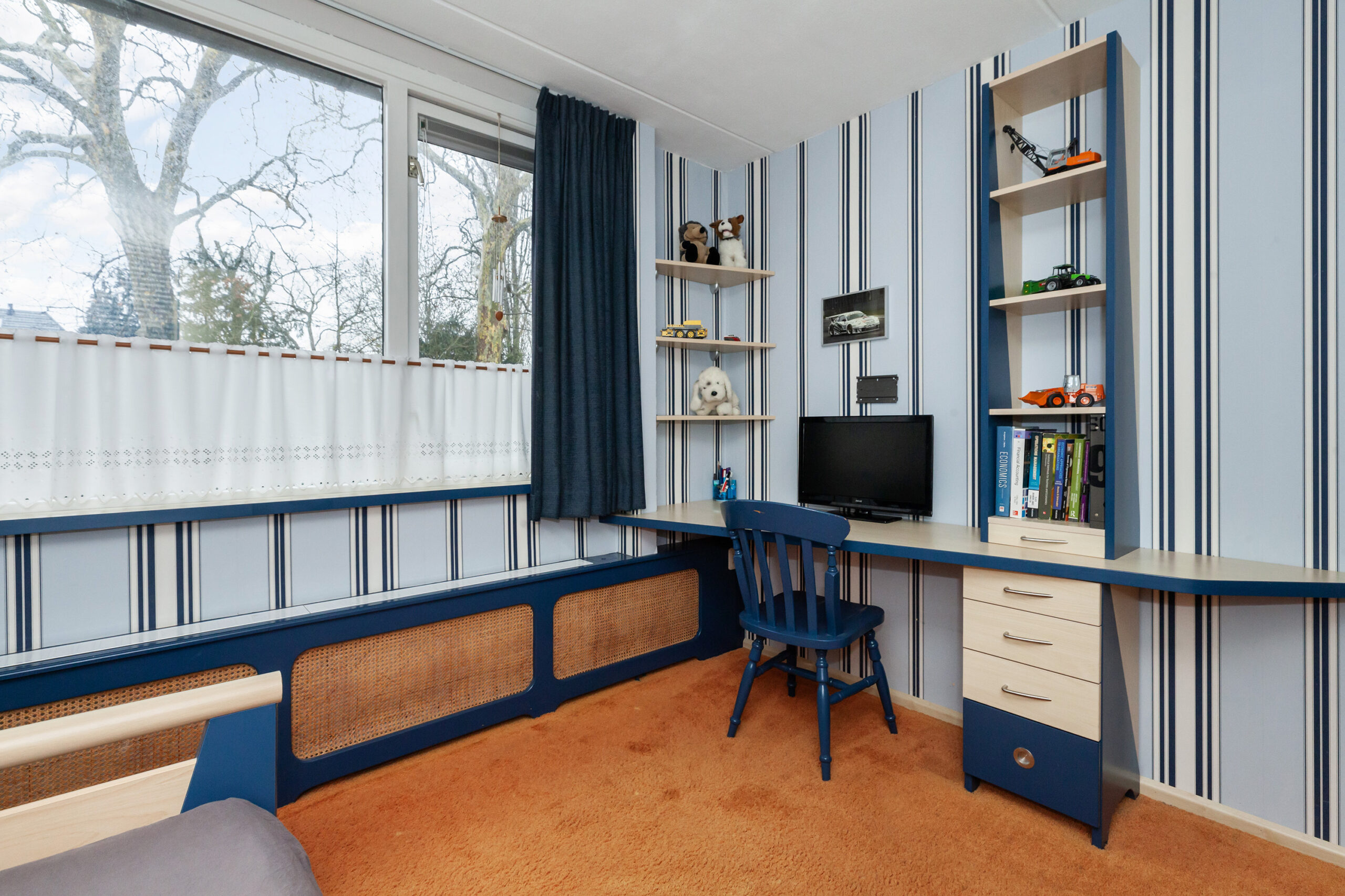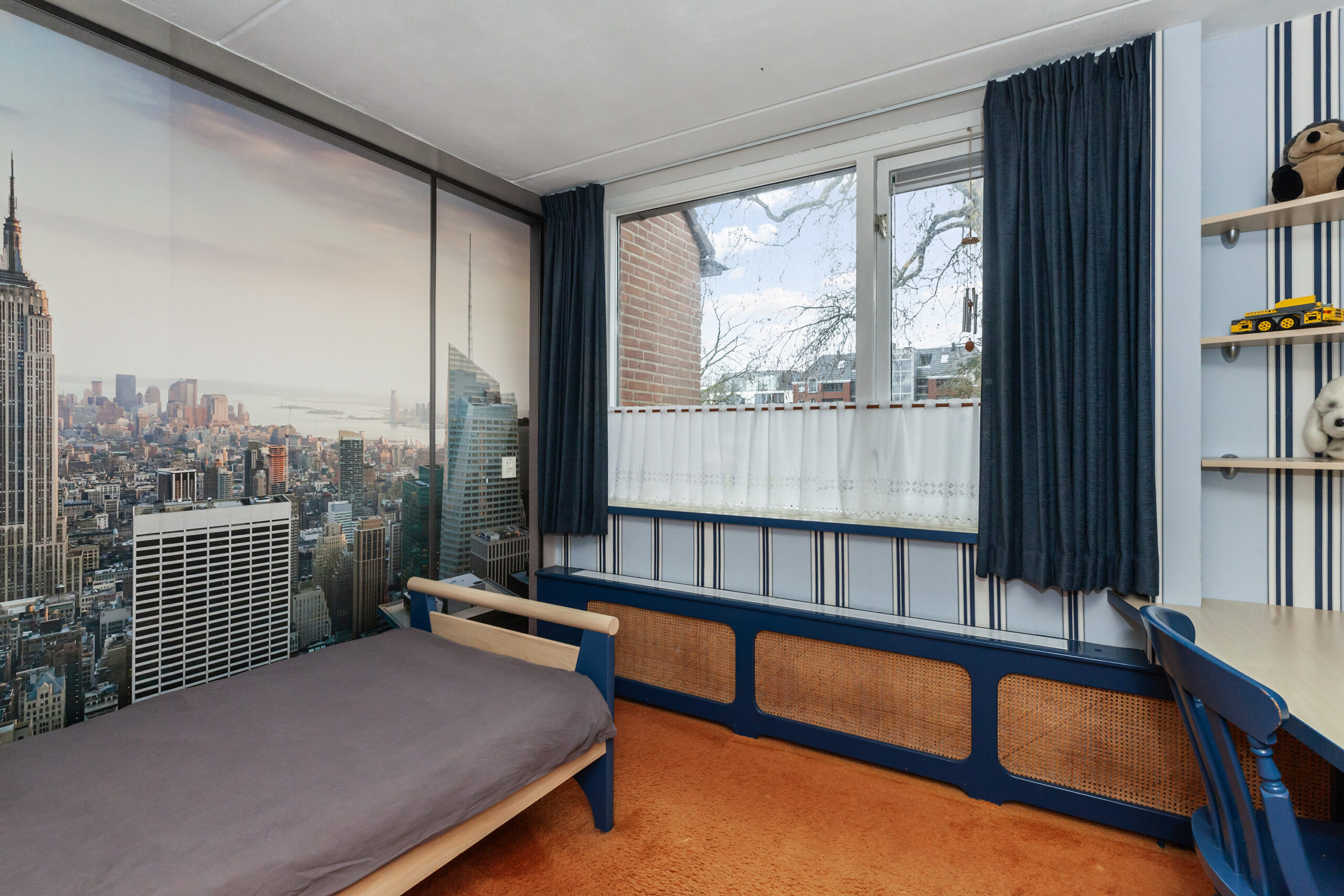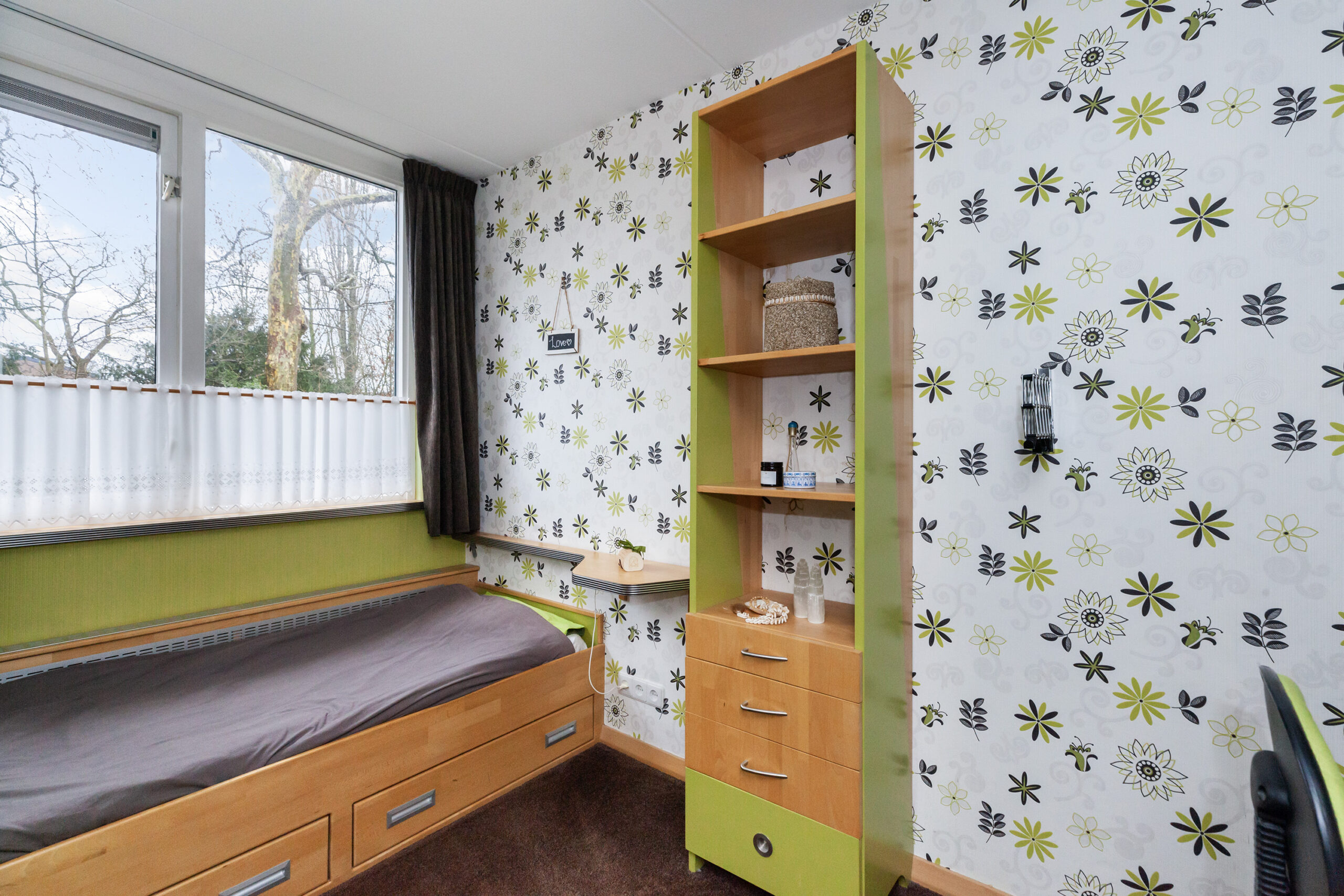 Praktische kamer met een vaste kastenwand.