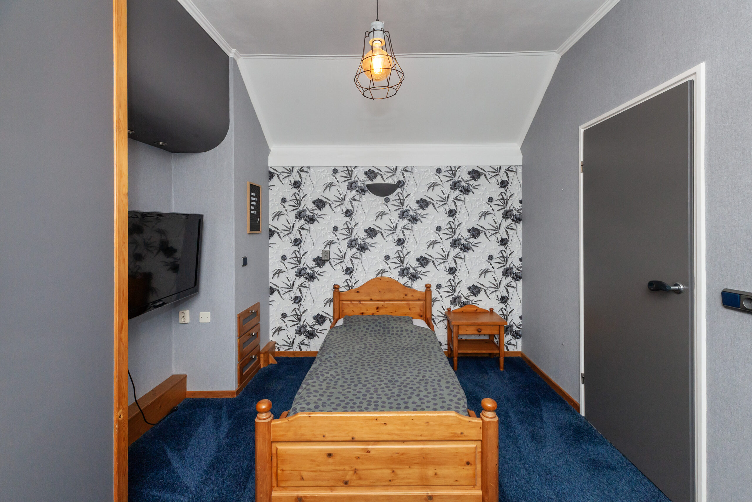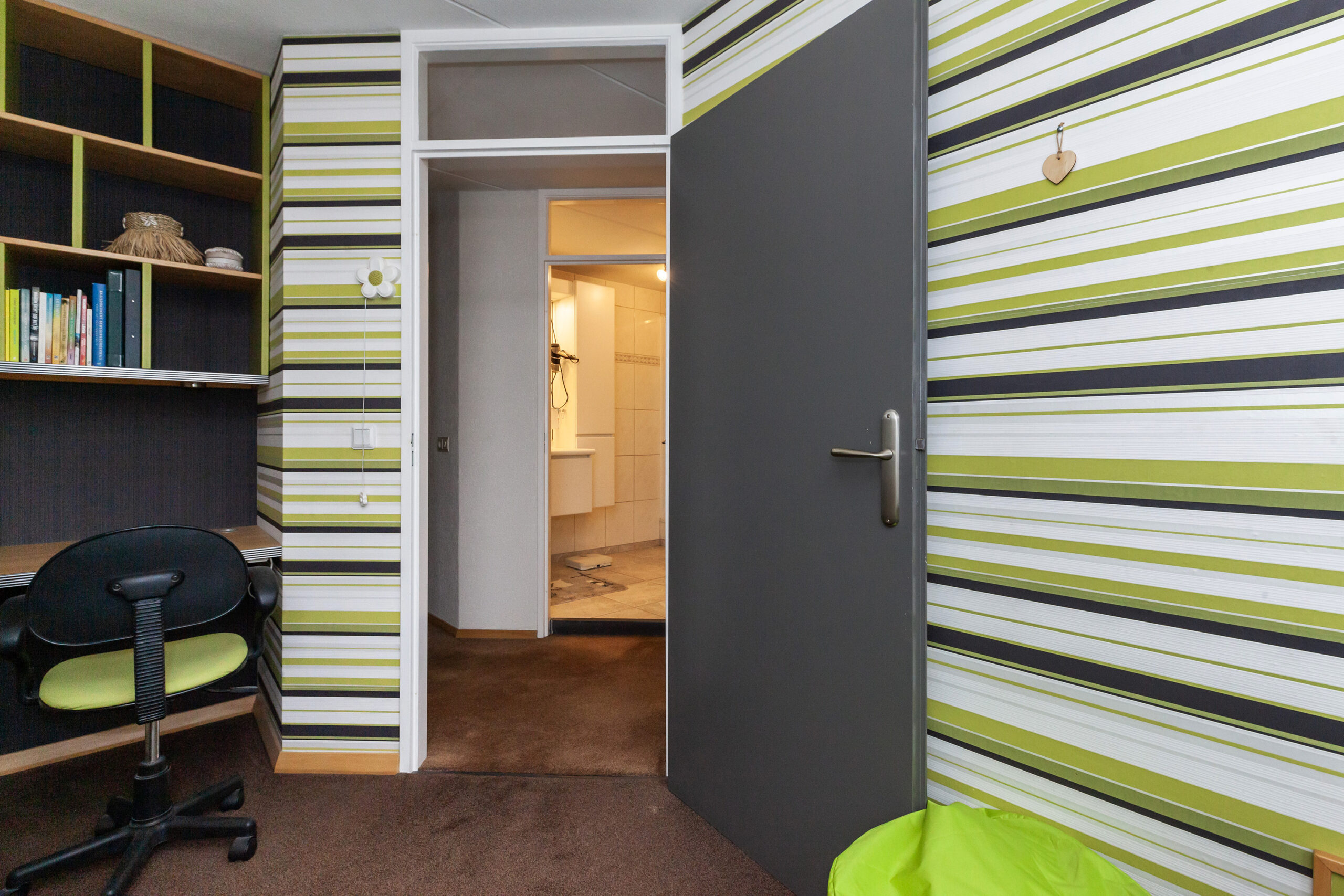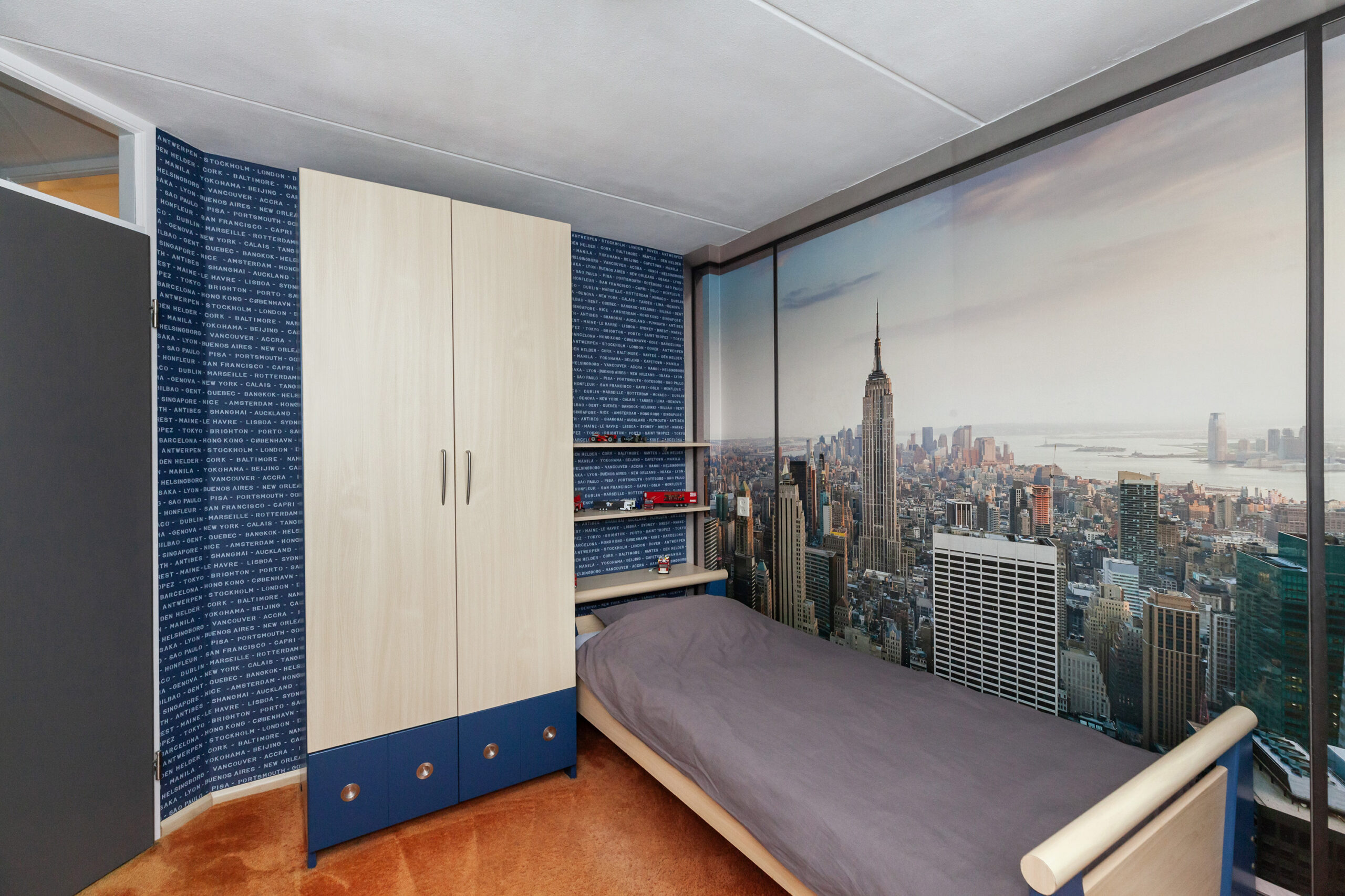 Praktische kamer met een vaste kastenwand.