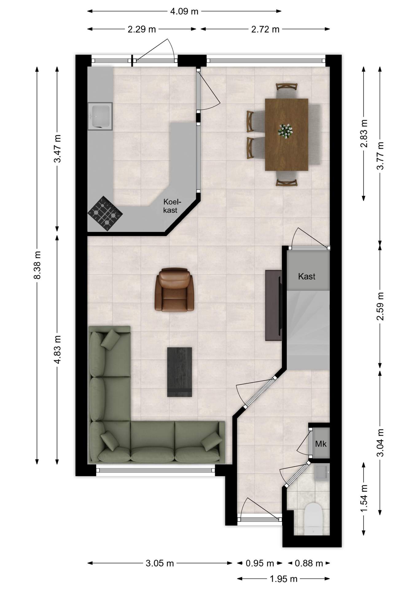Maatvoering: Circa 3.83/2.26 x 1.92m