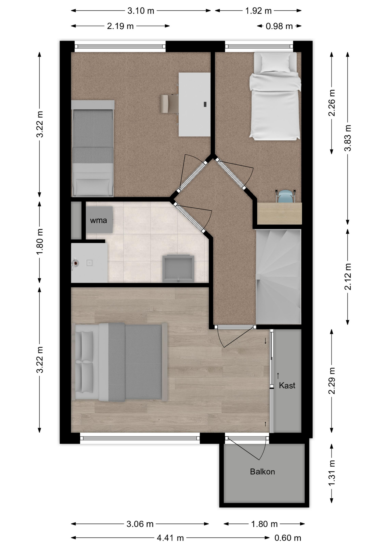 Maatvoering: Circa 3.22/2.26 x 3.10m