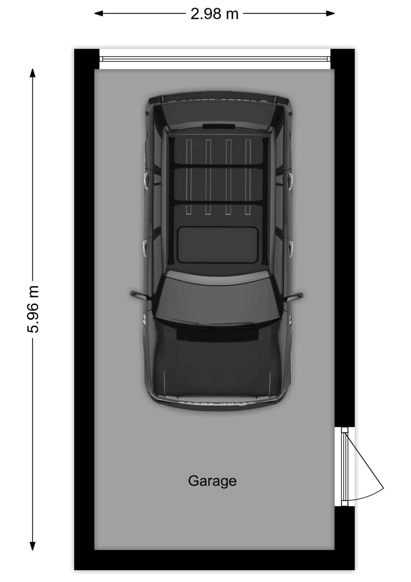 Zoals gezegd heeft u de garage aan de achterzijde welke circa 5.96 x 2.98m groot is en voorzien van elektra. Ideaal voor het parkeren van de auto of als opbergruimte.
