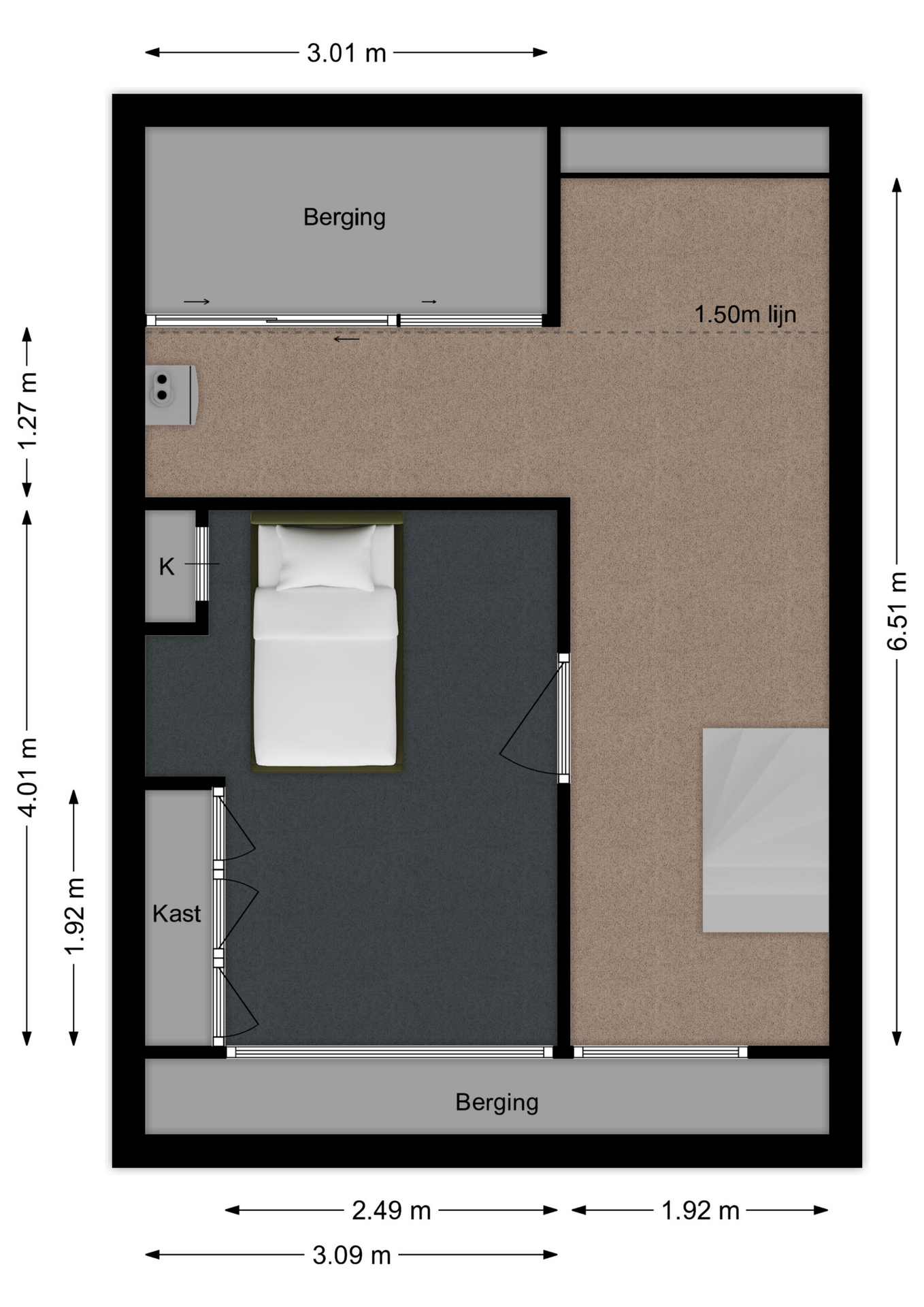Maatvoering: Circa 5.12 x 3.22/2.29m