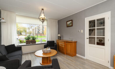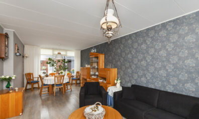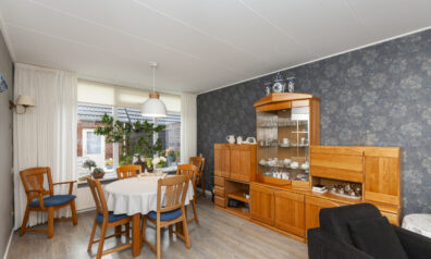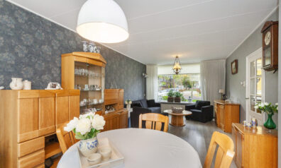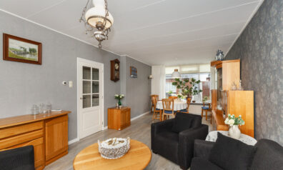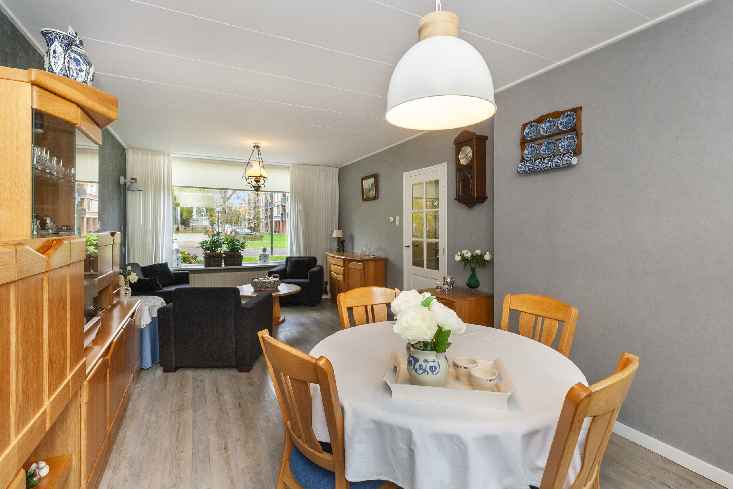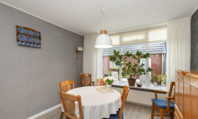 De woonkamer is een prettig doorzonkamer met grote raampartijen. De zithoek is gegroepeerd aan de voorzijde waar u leuk weg kijkt over de voorgelegen straat. Aan de achterzijde heeft u alle plaatst voor een gezellige eethoek.
