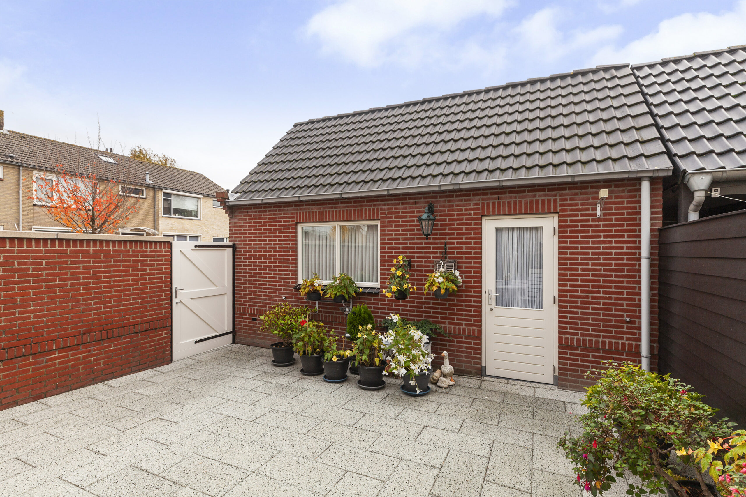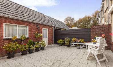 Op een perceel van 141 m² staat de woning en zoals eerder gezegd is de achtertuin gesitueerd op het zonnige zuiden. Over de volle breedte is er een elektrisch zonnescherm. De tuin zelf is onderhoudsvriendelijk aangelegd met bestrating en achterin de tuin staat de grote garage.