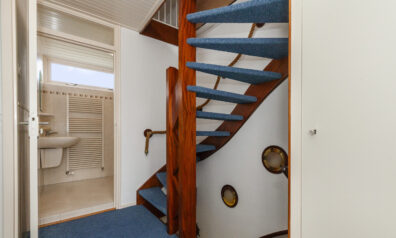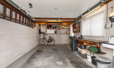 De garage (circa 5.75 x 3.55m) is voorzien van een elektrische roldeur en een wasbak. De nokhoogte is maar liefst 4.44m en er is een zolder in gemaakt. Of u nu liever de auto hier parkeert, of dit gebruikt als opslag- werk- of hobbyruimte, het kan hier allemaal!