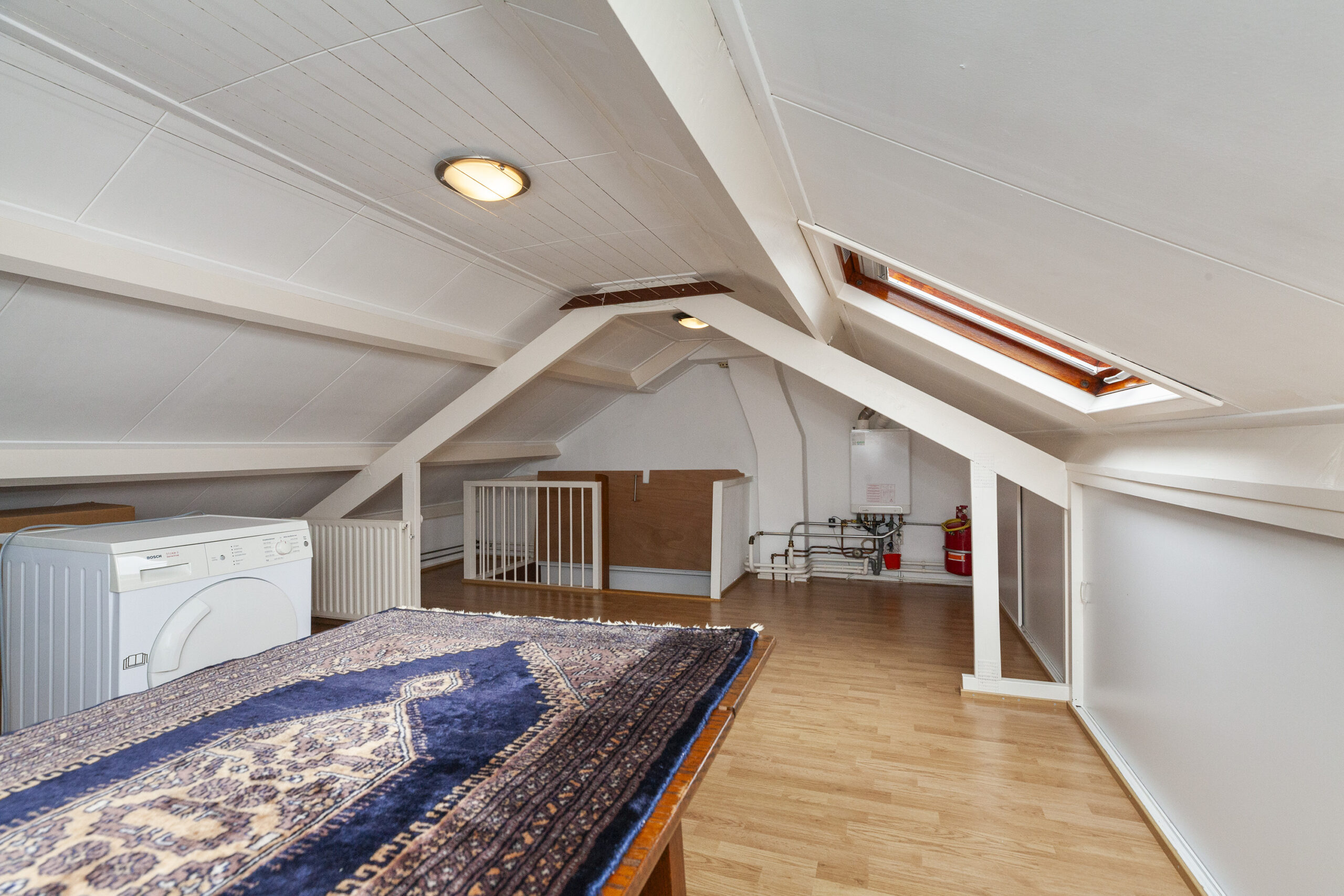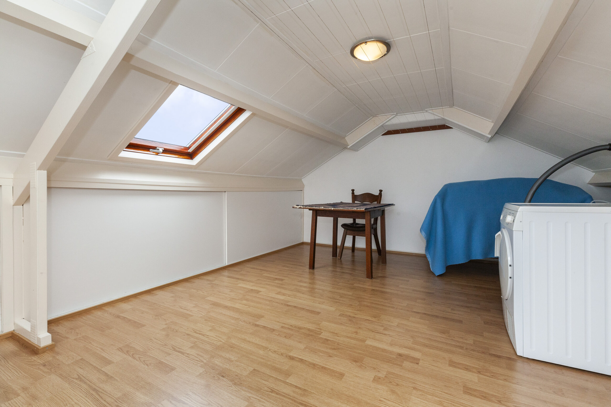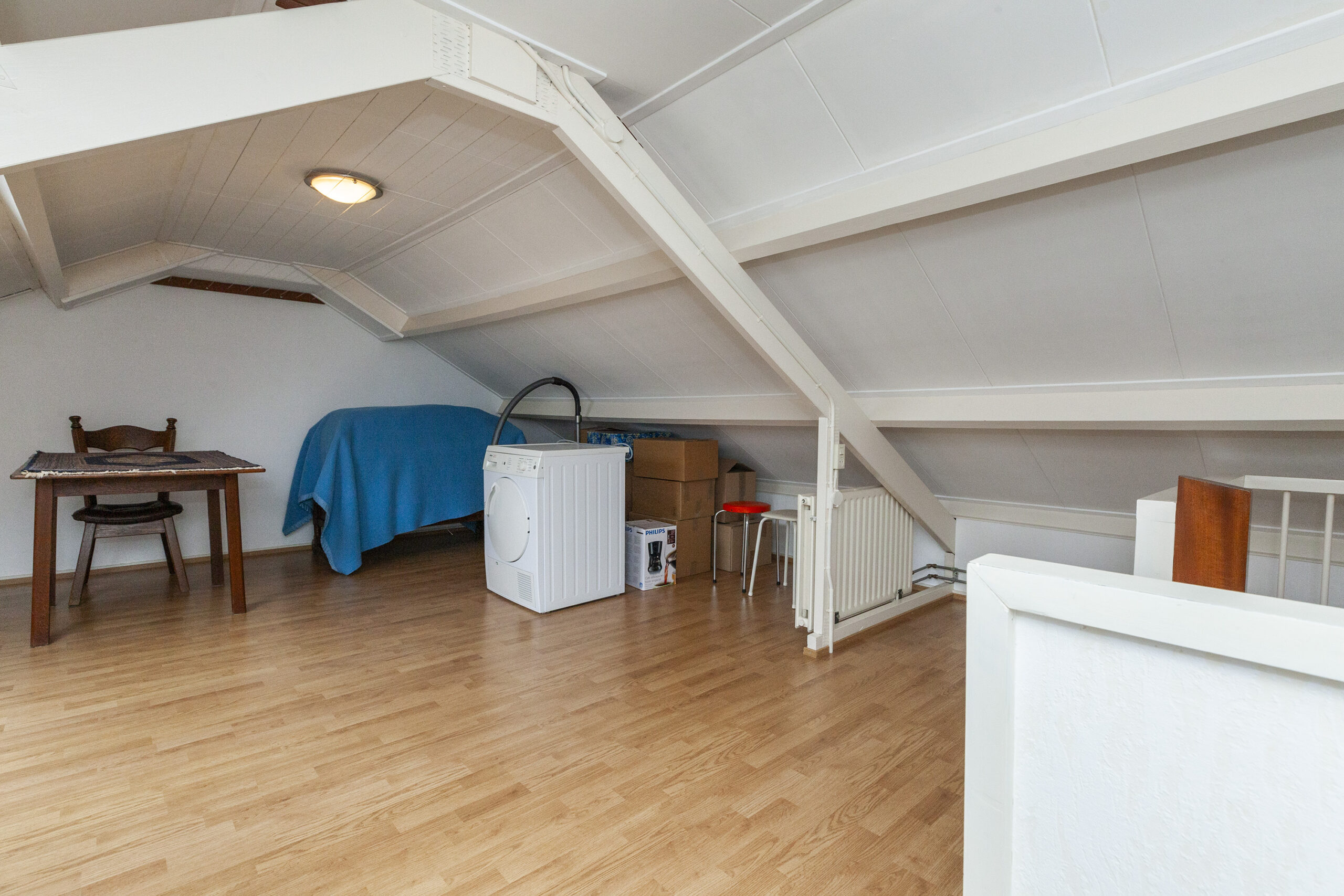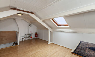 Met een vaste trap vanaf de overloop komt u op de zolderverdieping. Doordat de nokhoogte 1.95m is, behoort de oppervlakte niet tot woonoppervlakte, maar tot overige inpandige ruimte. Er zijn wel uitbreidingsmogelijkheden om hier meerdere kamers te creëren. Aan de achterzijde is er bergruimte achter de knieschotten en een tuimelraam. Verder heeft u de opstelling van de C.V.-ketel.