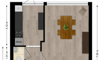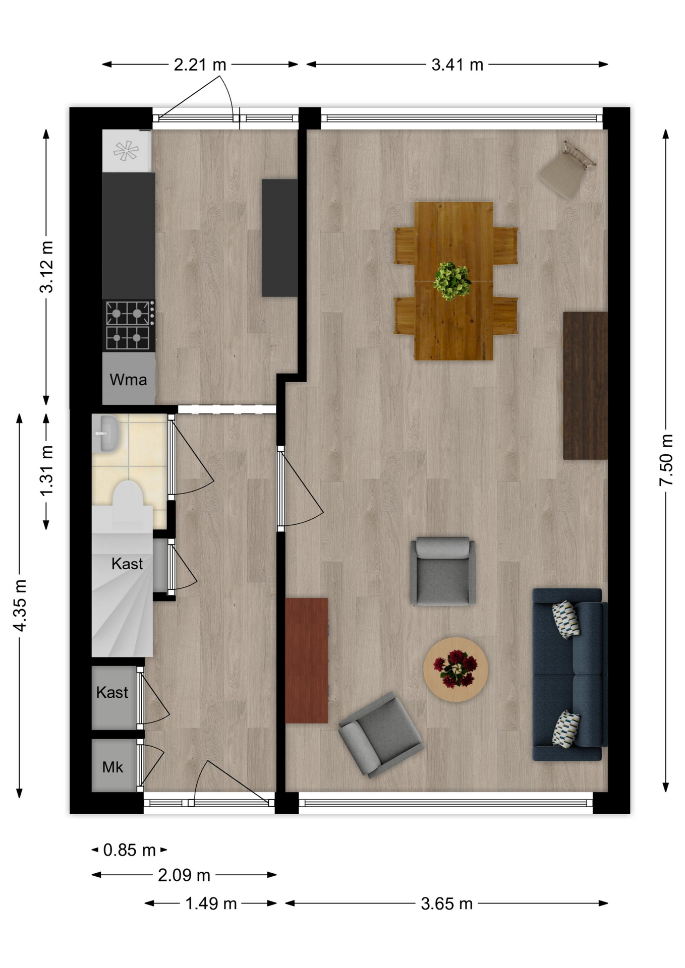 Maatvoering: Circa 7.50 x 3.65/3.41m