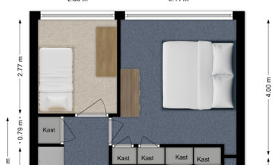 Aan de voorzijde is deze slaapkamer gesitueerd en ook heerlijk ruim. Daarnaast zijn hier ook een tweetal inbouwkasten gelijk aan slaapkamer I.