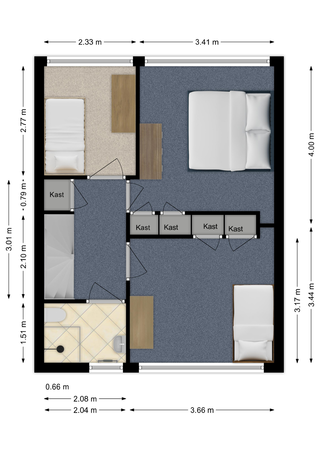 Maatvoering: Circa 4.00 x 3.66/3.41m