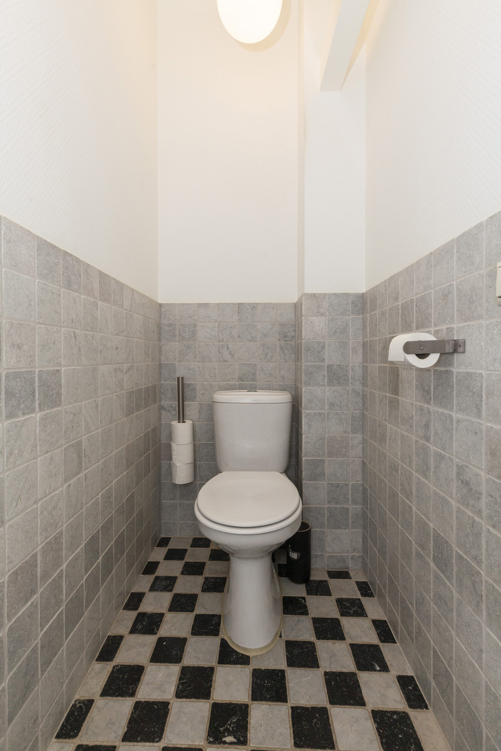 De toiletruimte is in dezelfde stijl afgewerkt als de badkamer. Hier heeft u een staand toilet.