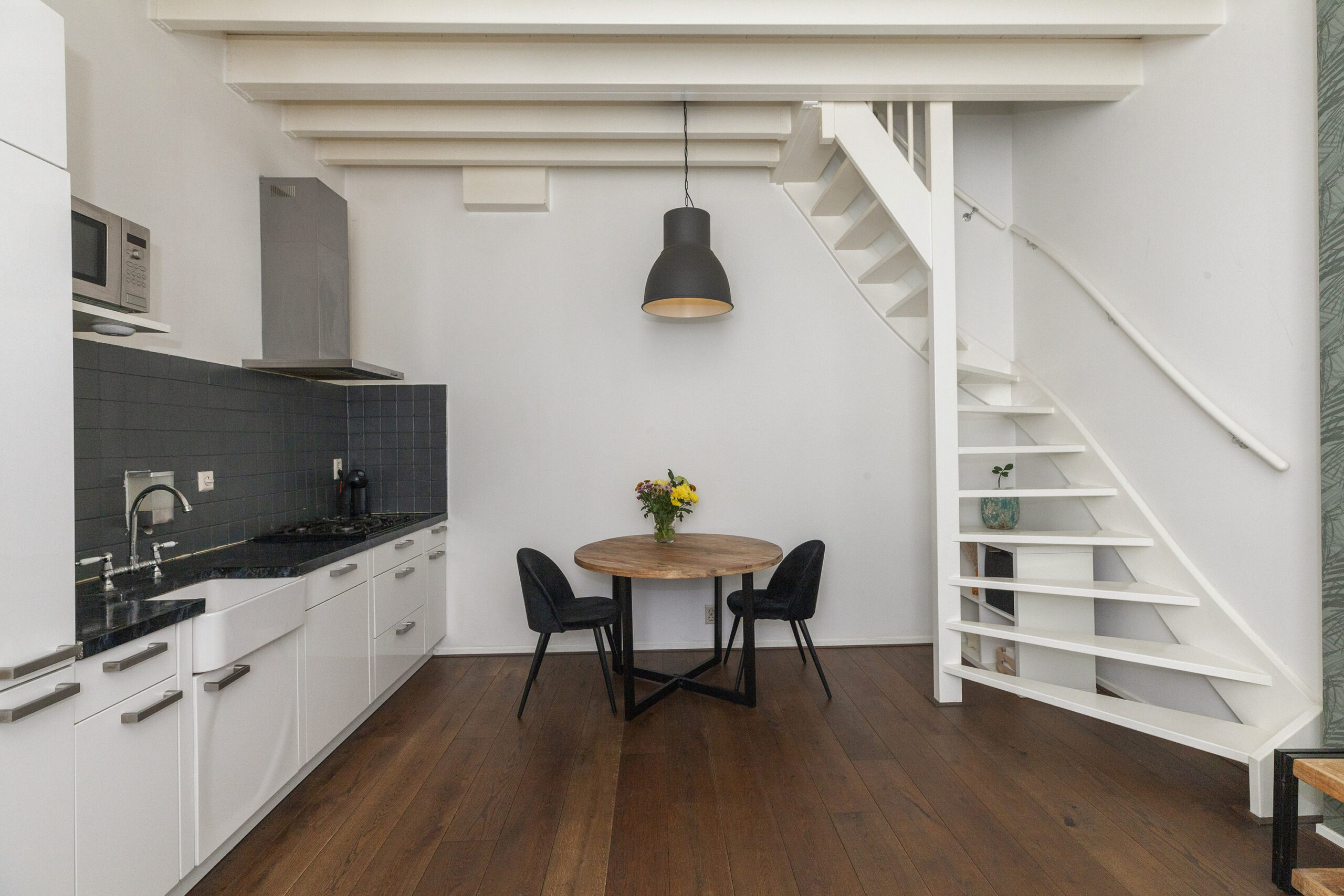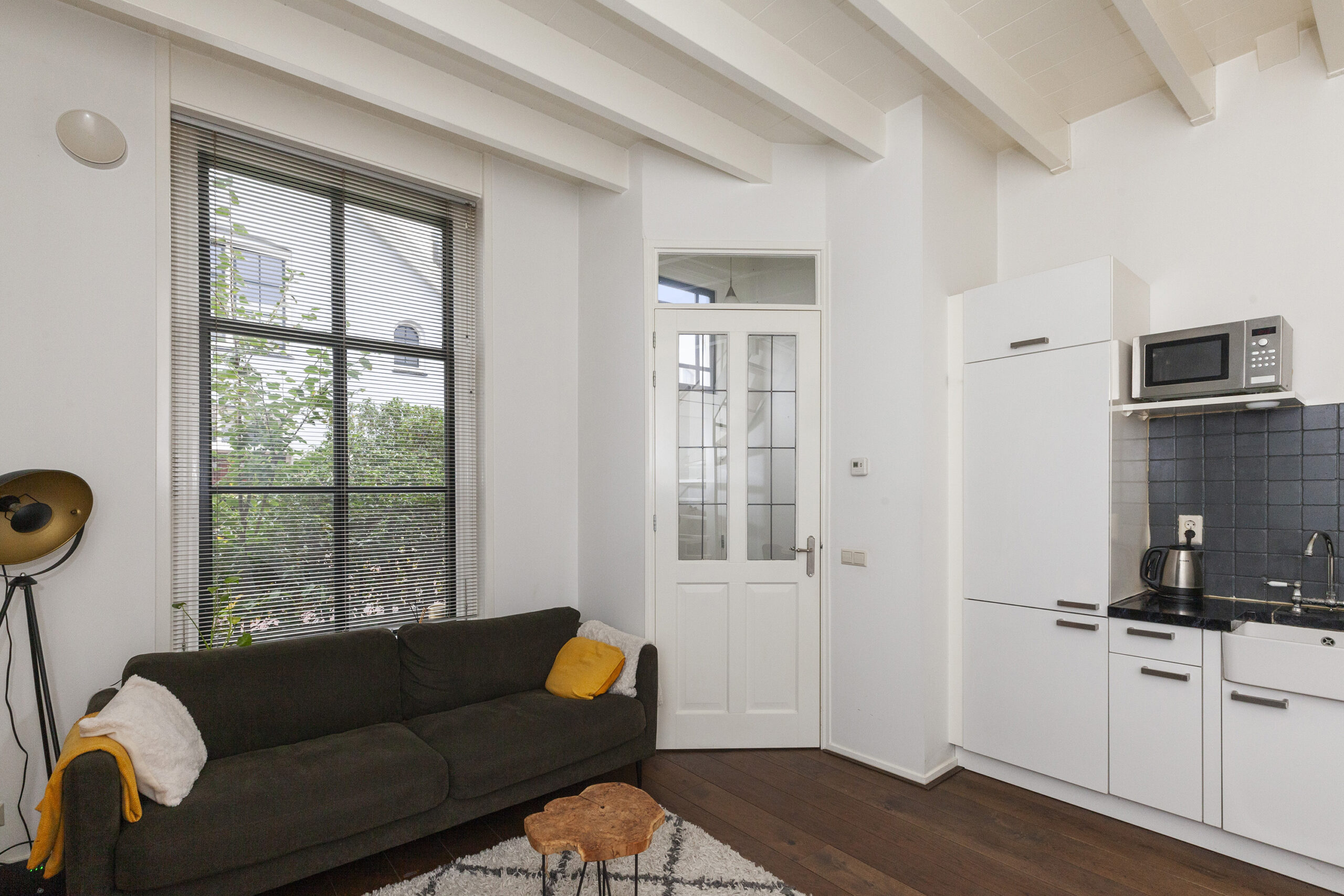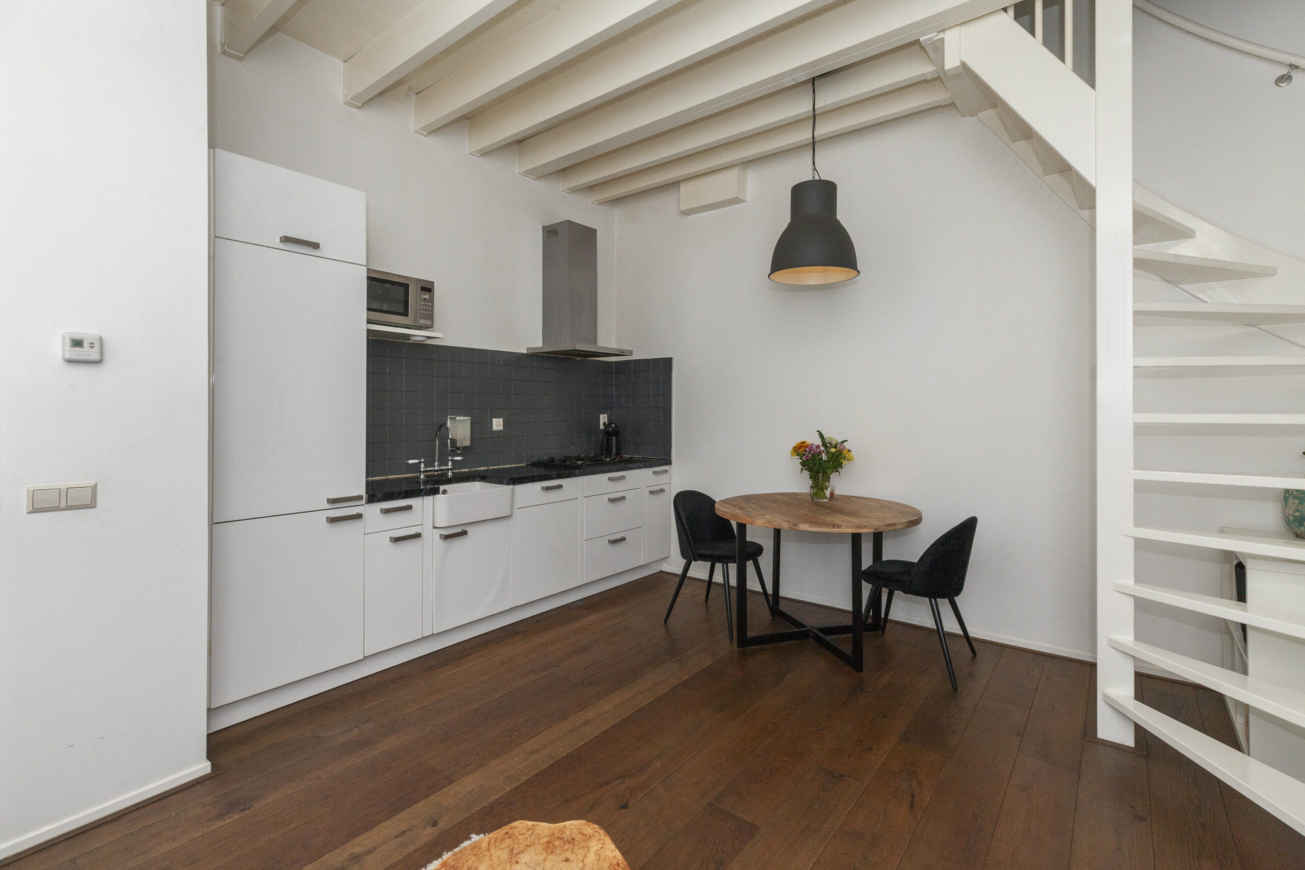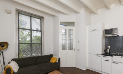 Welkom thuis in deze gezellige woonkamer met keuken. Mede door het hoge plafond van ruim 3 meter met de authentieke balken en het originele schuifraam zorgen voor nét dat extra sfeertje! U kunt de kamer zo inrichten met een zit- en eethoek. Aan de linkerzijde heeft u de keukenopstelling voorzien van een 4-pits gaskookplaat, afzuigkap, spoelbak, vaatwasser, magnetron en een koel-/vriescombinatie. Oftewel alle gemakken!