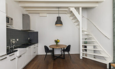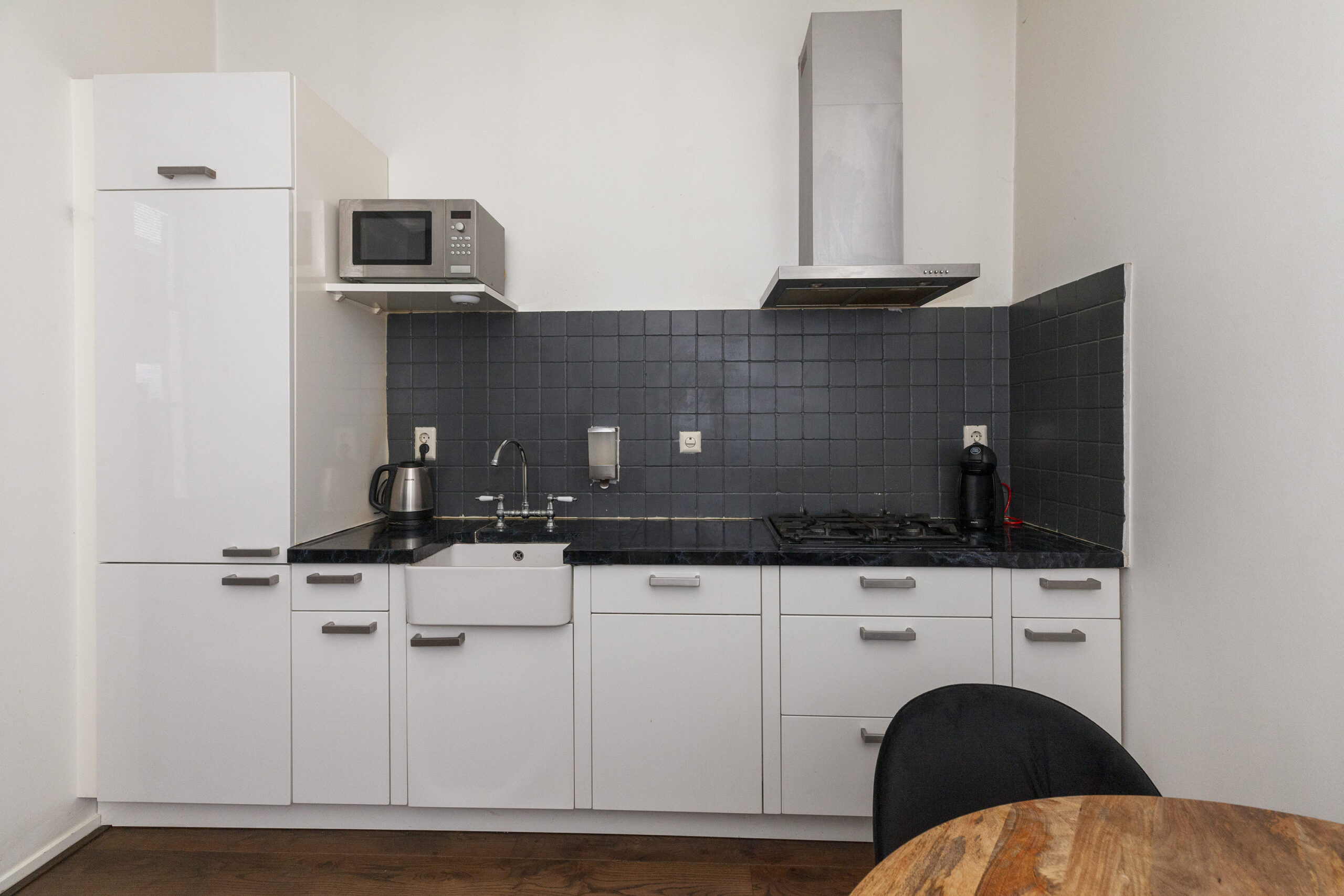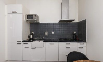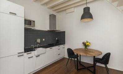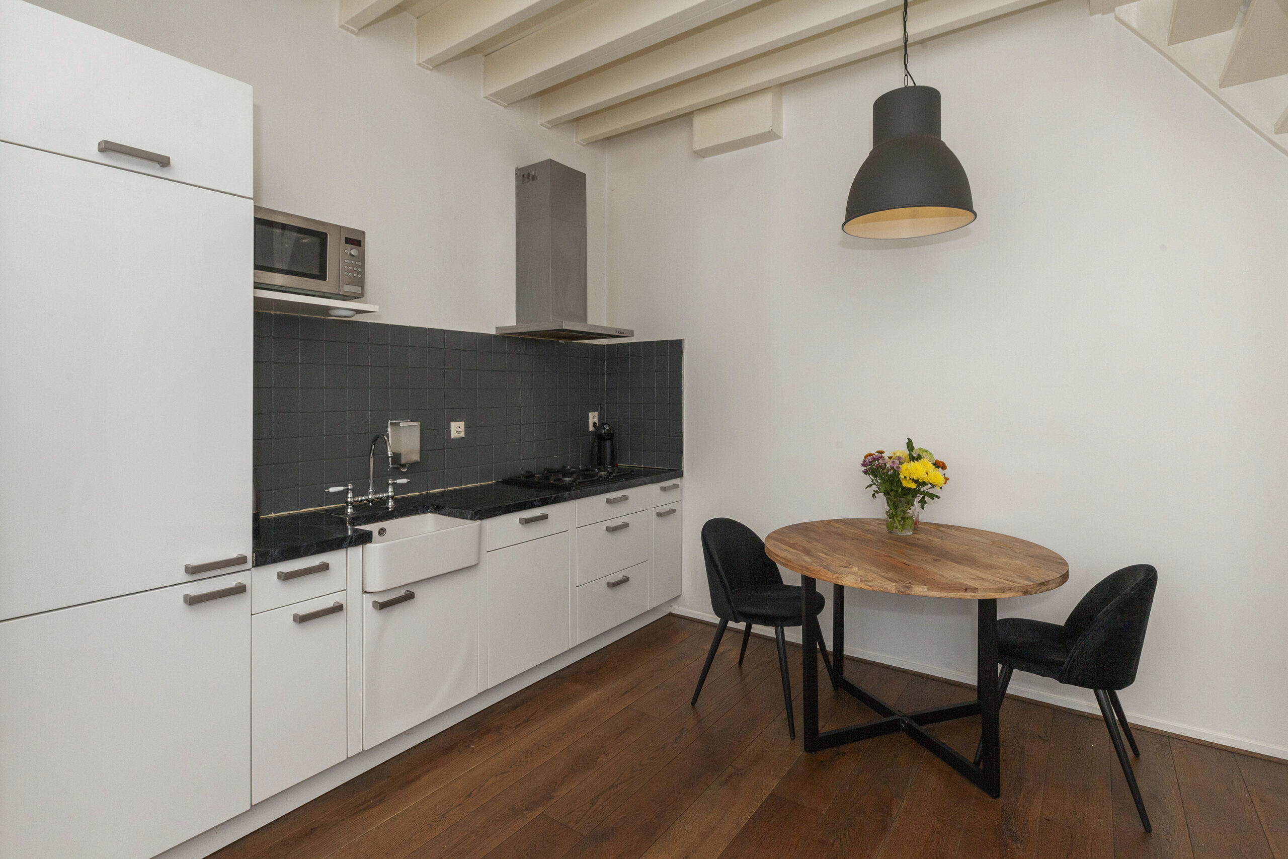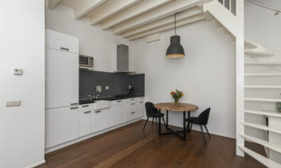 Welkom thuis in deze gezellige woonkamer met keuken. Mede door het hoge plafond van ruim 3 meter met de authentieke balken en het originele schuifraam zorgen voor nét dat extra sfeertje! U kunt de kamer zo inrichten met een zit- en eethoek. Aan de linkerzijde heeft u de keukenopstelling voorzien van een 4-pits gaskookplaat, afzuigkap, spoelbak, vaatwasser, magnetron en een koel-/vriescombinatie. Oftewel alle gemakken!
