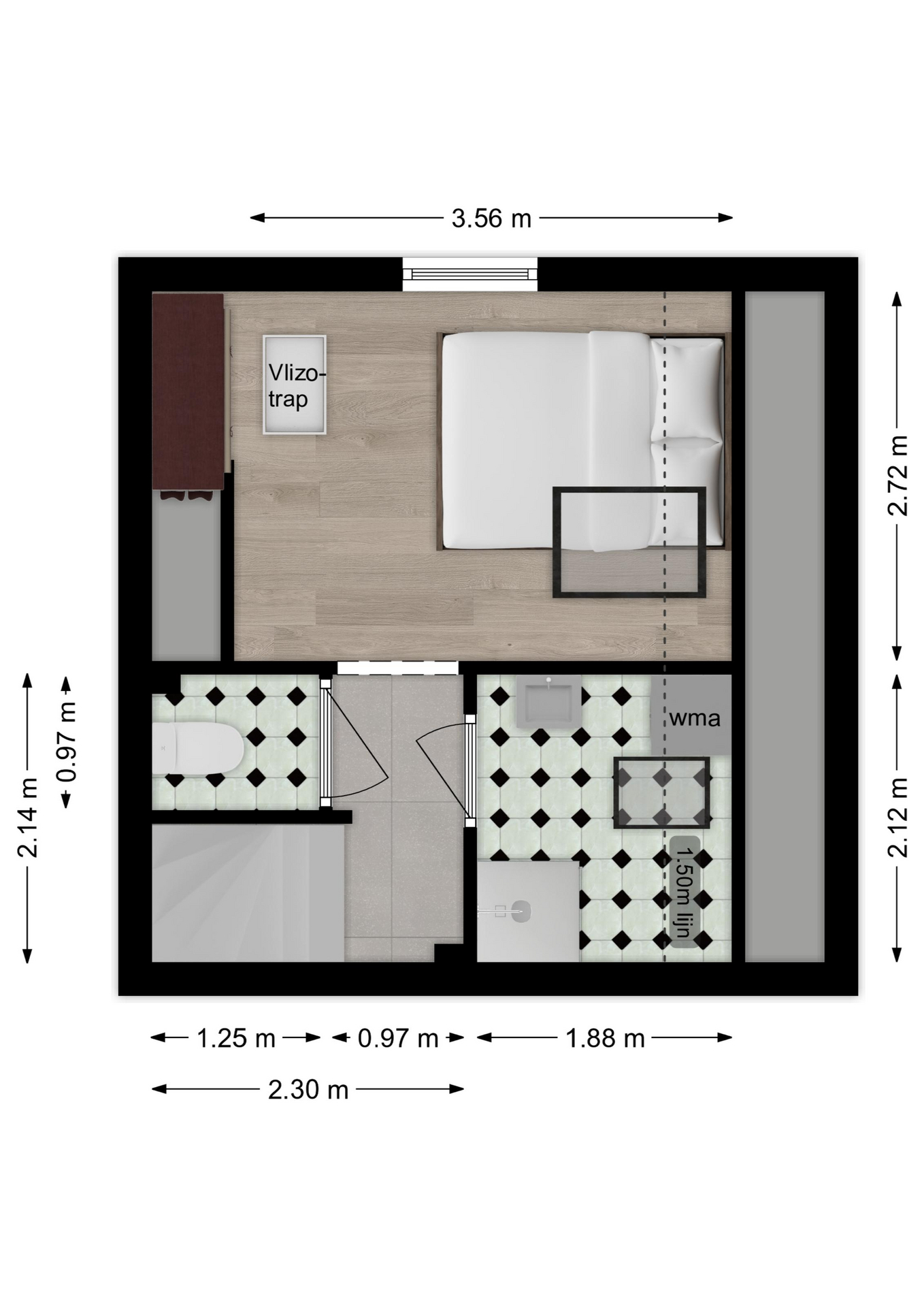 Maatvoering: Circa 1.50 x 1.19/0.60m