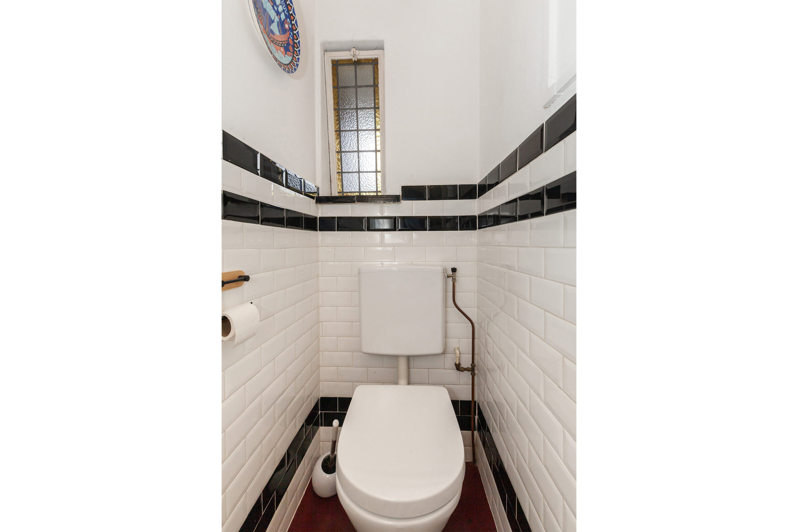 We zullen het niet bij elke ruimte zeggen, maar kijkt u eens naar het raam, eveneens origineel glas-in-lood! Deze sanitaire ruimte is voorzien van een toilet.