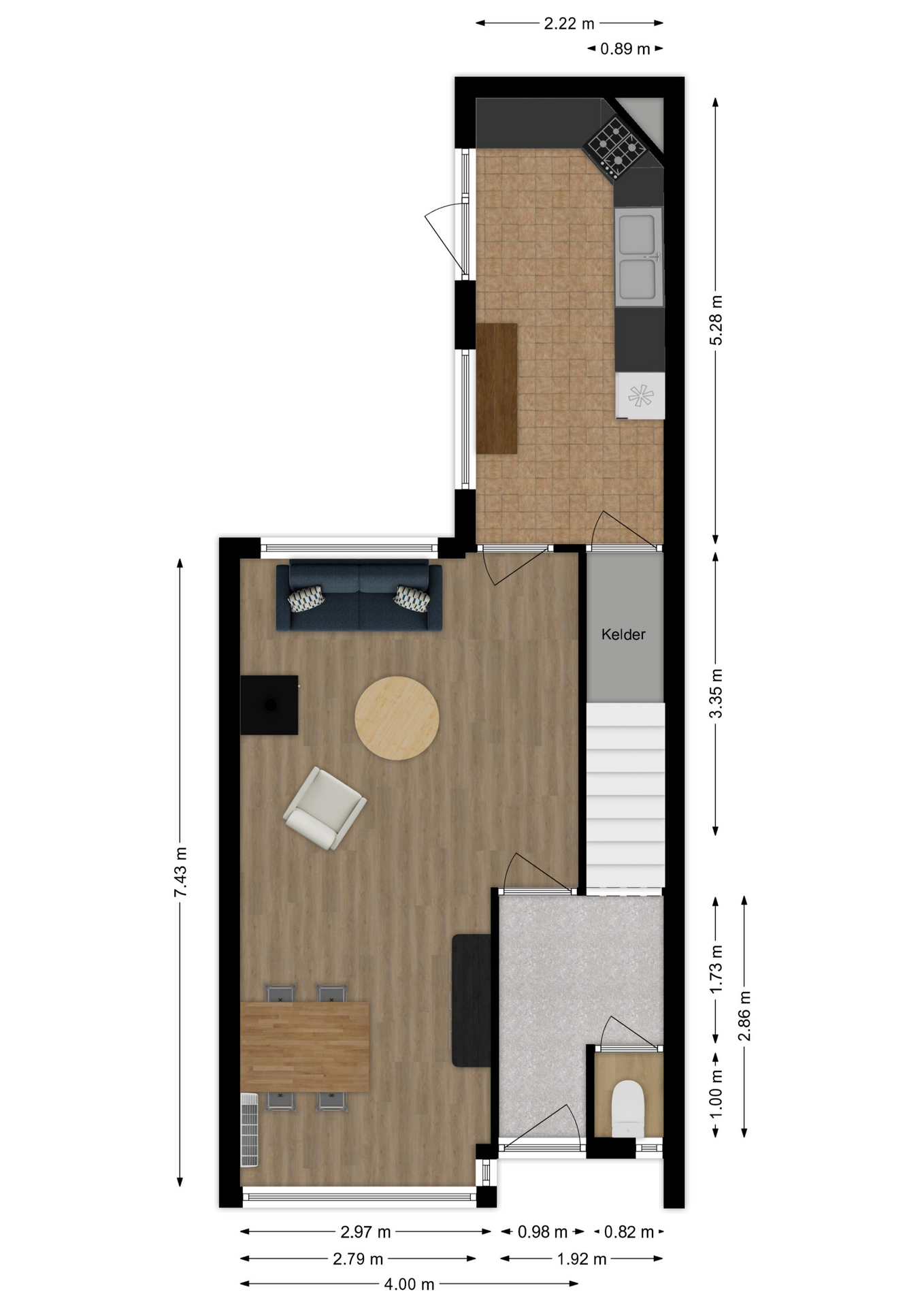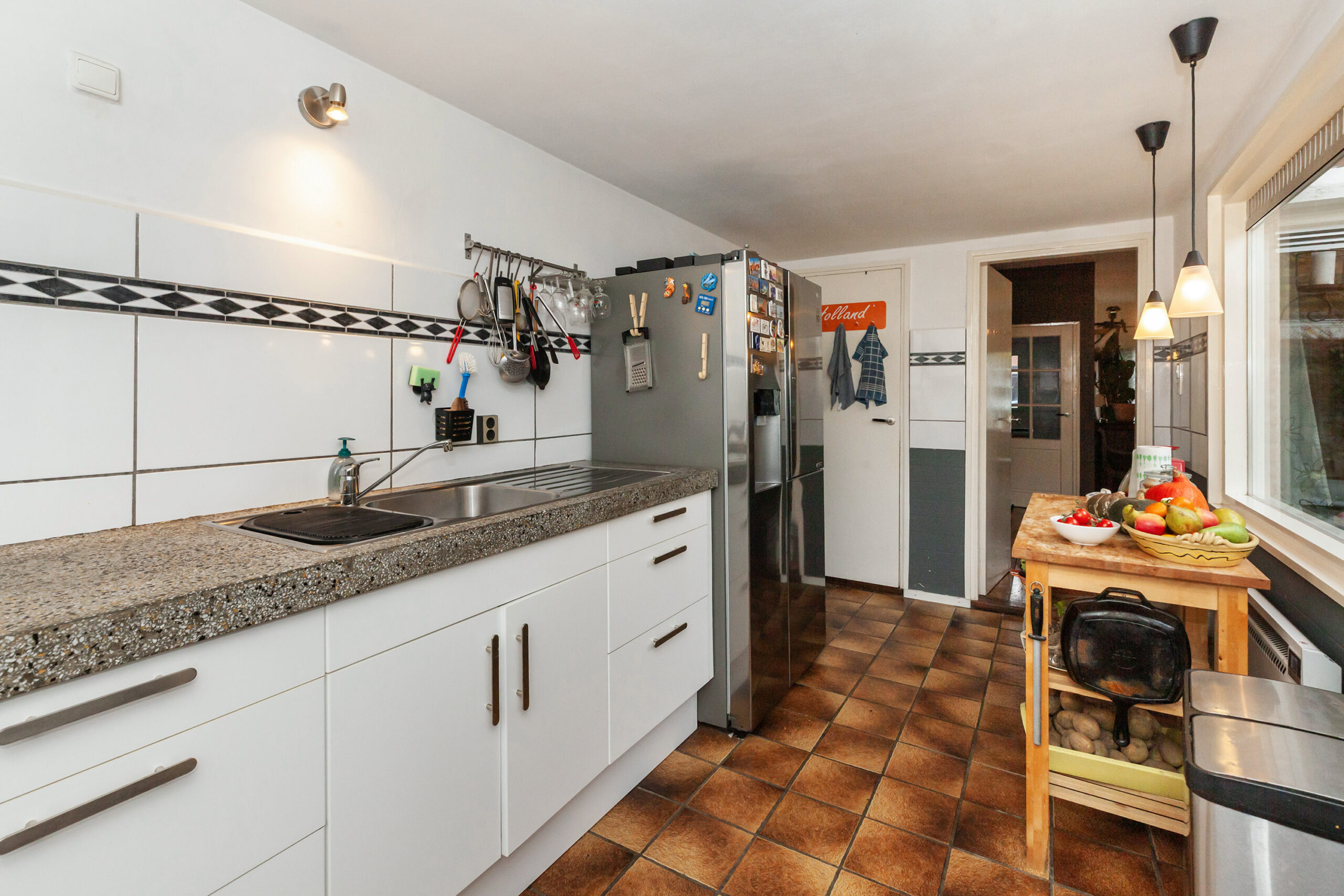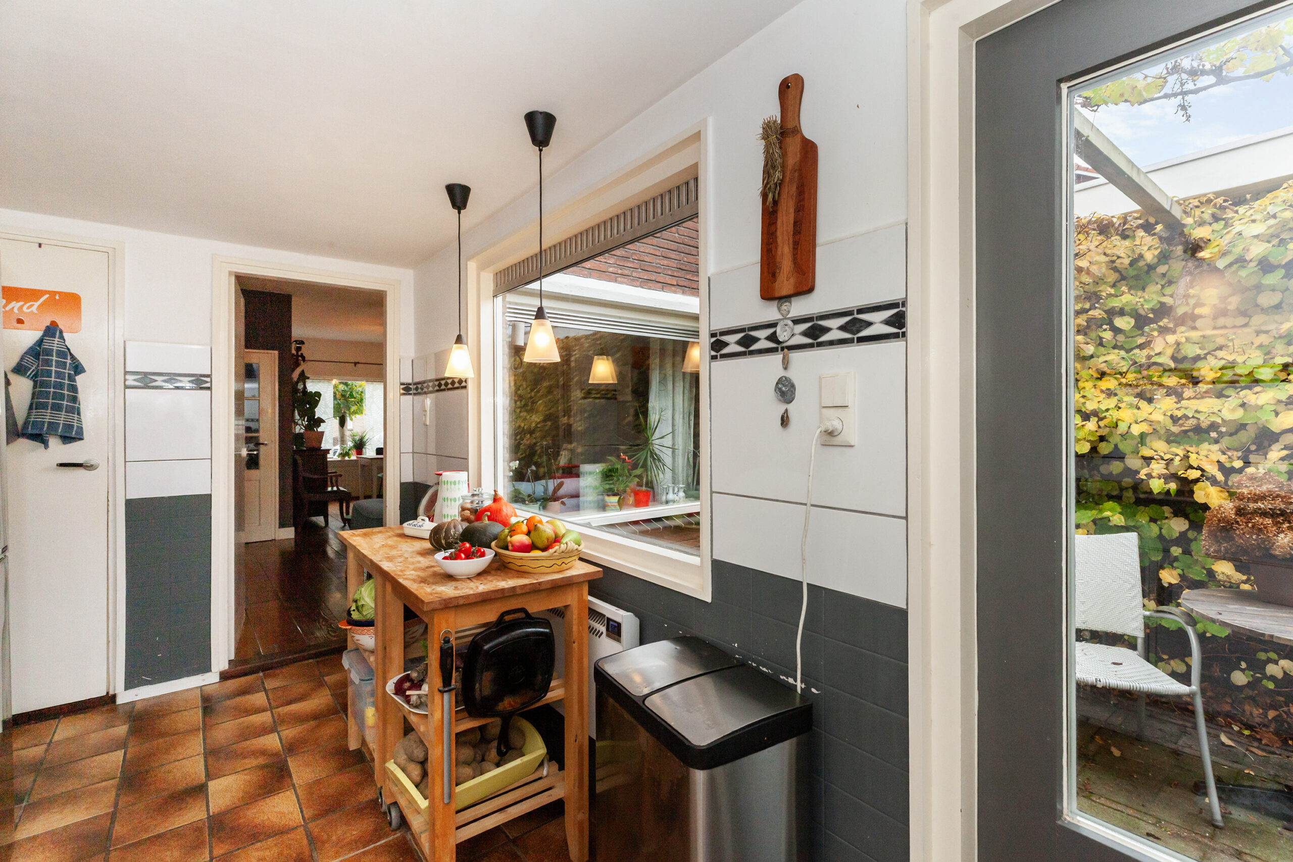 Aan de achterzijde is er een grote aanbouw geplaatst waar u de keuken heeft. Aan de ruime hoekopstelling met graniet aanrechtblad kunt u heerlijk kokkerellen. Aan keukenapparatuur is er de beschikking over een 4-pits gaskookplaat, afzuigkap, oven en koel-/vriescombinatie (ter overname). Daarnaast is er een close-in boiler voor direct warm water. Wat eveneens heel fijn is, is de grote kelderruimte (circa 3.35 x 0.89m), welke geheel onder de trap doorloopt. Hier kunt u allerhand proviand opbergen. Verder kunt u via de achterdeur naar de tuin.