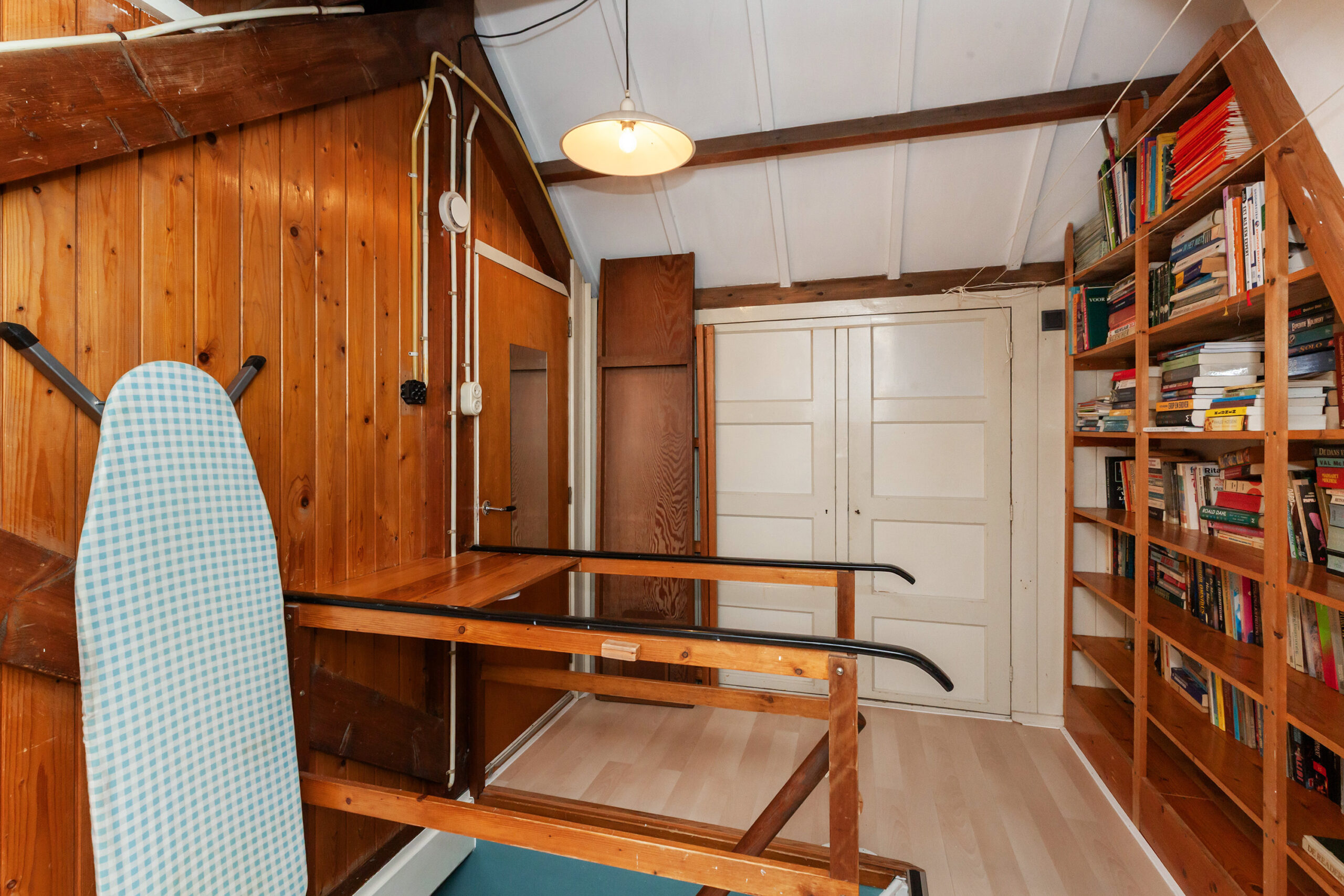 Achter één van de deuren op de overloop bevindt zich de trap naar de tweede verdieping.