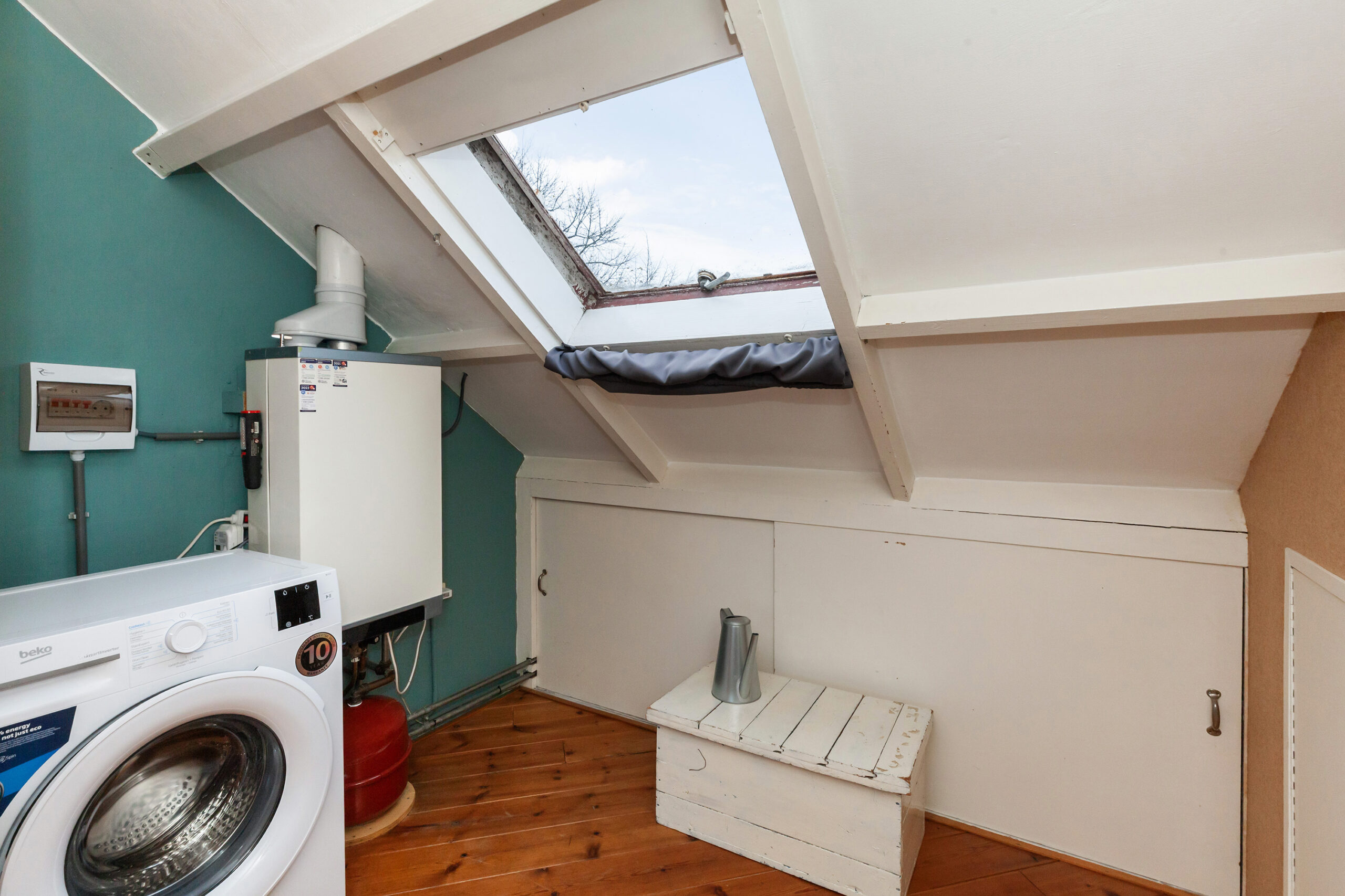 Deze derde slaapkamer is over de volle lengte van de woning gelegen met aan beide zijden bergruimte onder het schuine dak. Tevens heeft u hier de opstelling van de C.V.-ketel en de aansluitingen voor uw wasapparatuur.