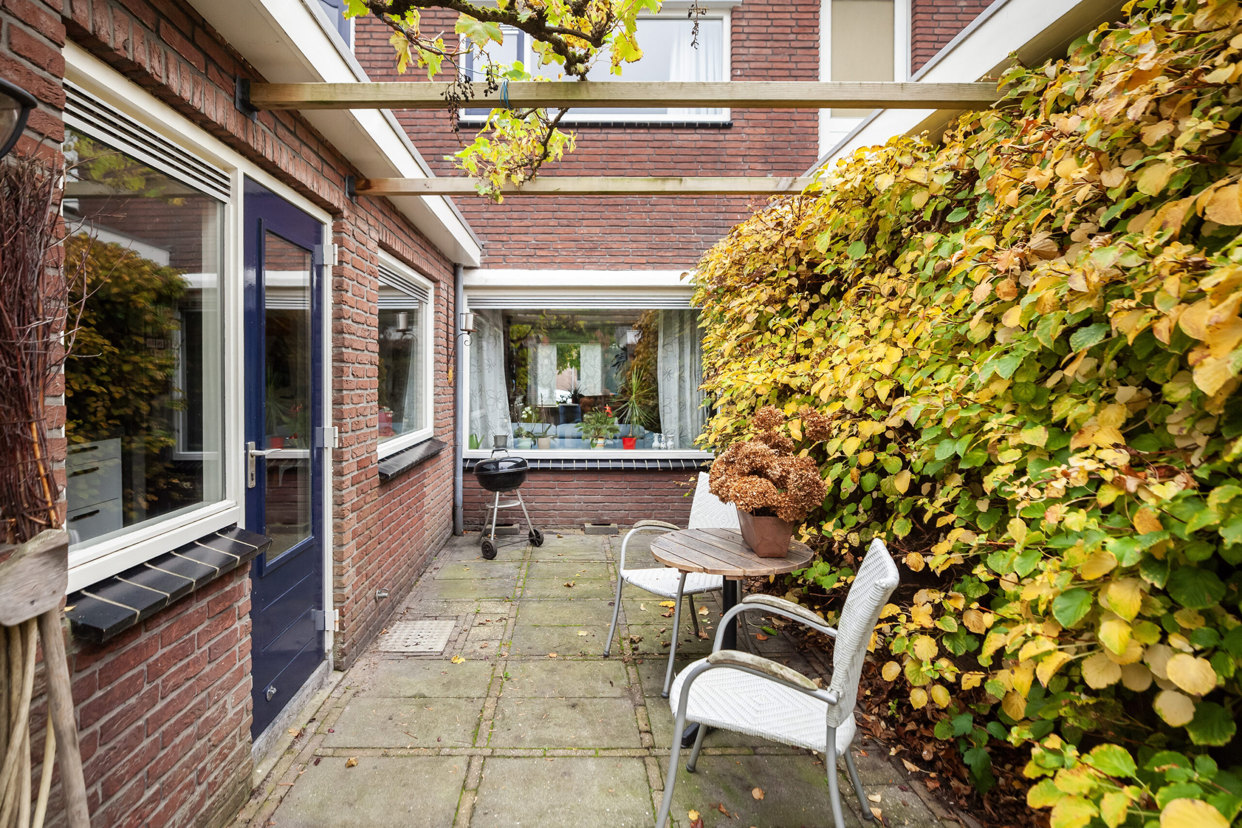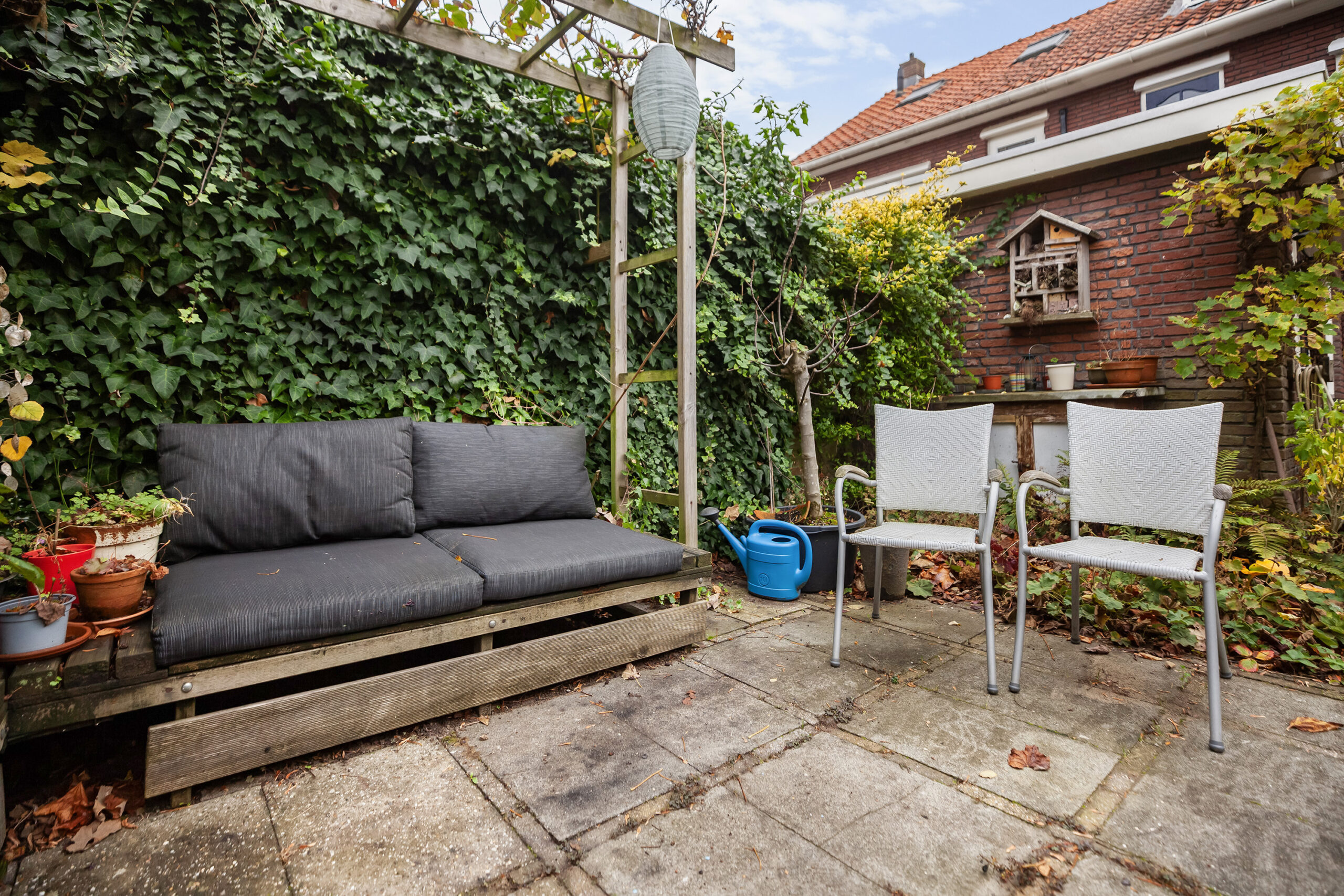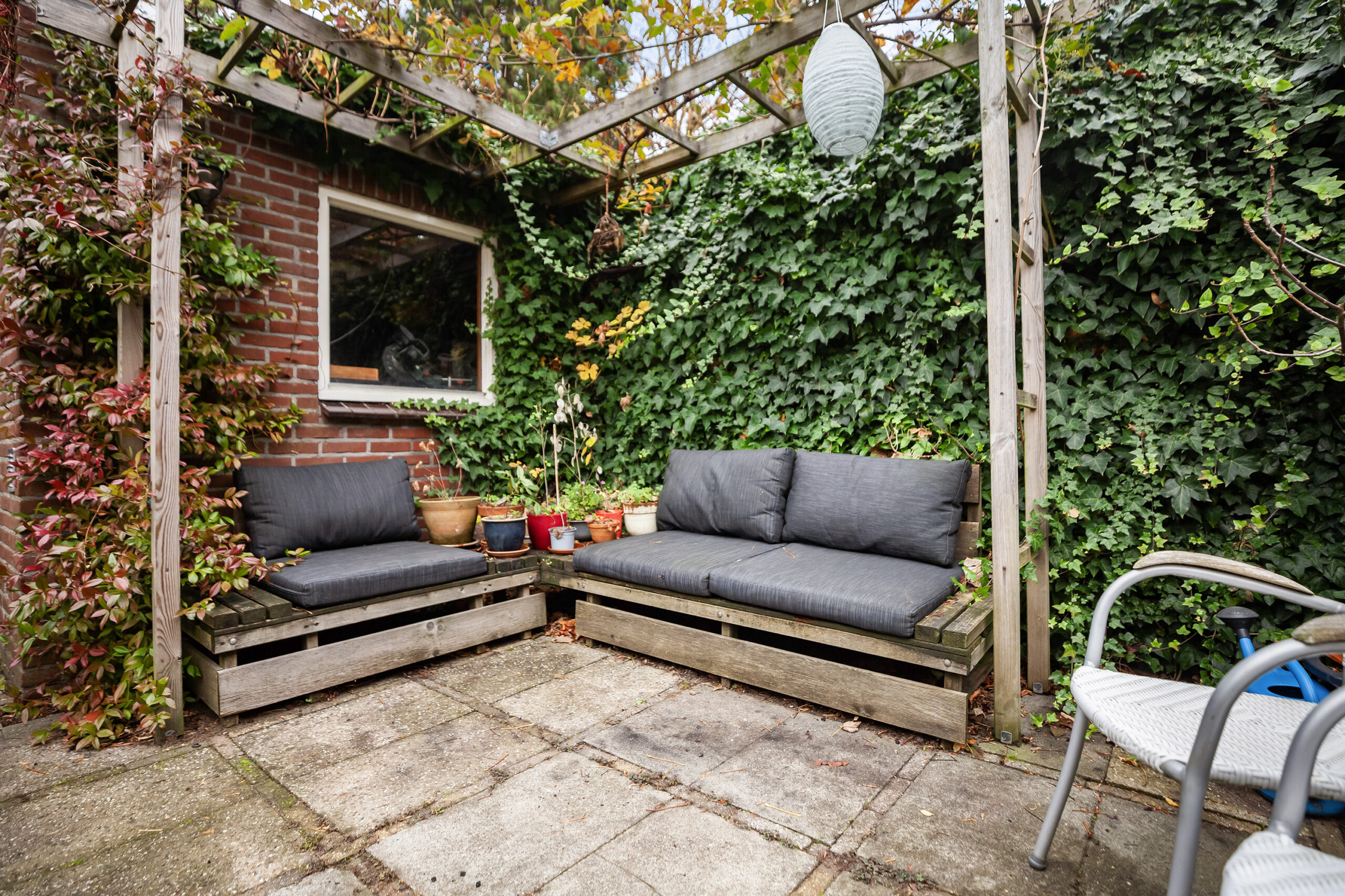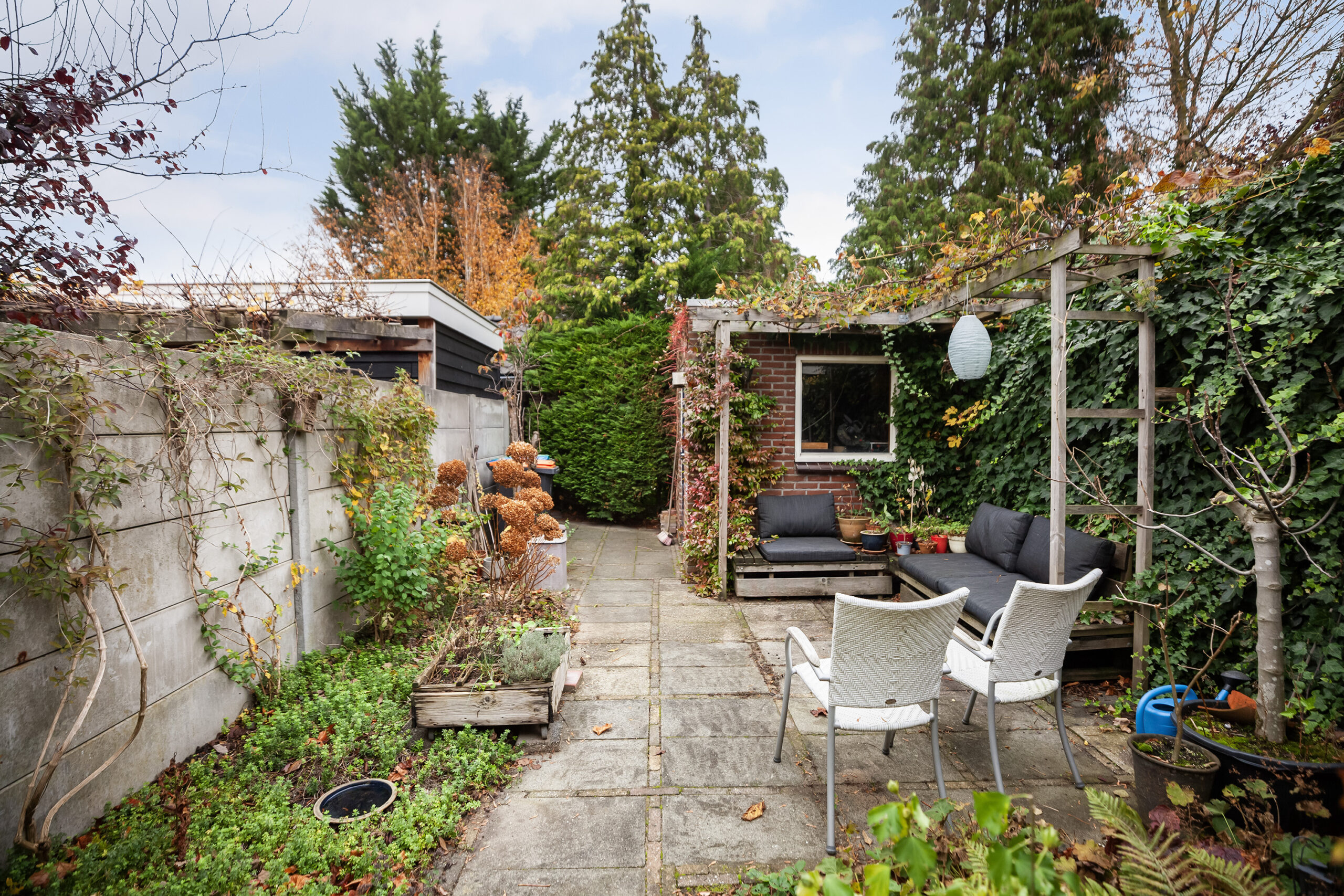 De woning is gelegen op een perceel van 145 m², waarvan een groot gedeelte de achtertuin is. Deze is heerlijk diep en biedt u ook veel privacy. Diverse zithoekjes zijn gecreëerd. Een druif groeit sierlijk langs de pergola bij de achterdeur. Maar wat dacht u van het knusse zitje bij de berging, waar in het voorjaar de Jasmijn heerlijk geurt?