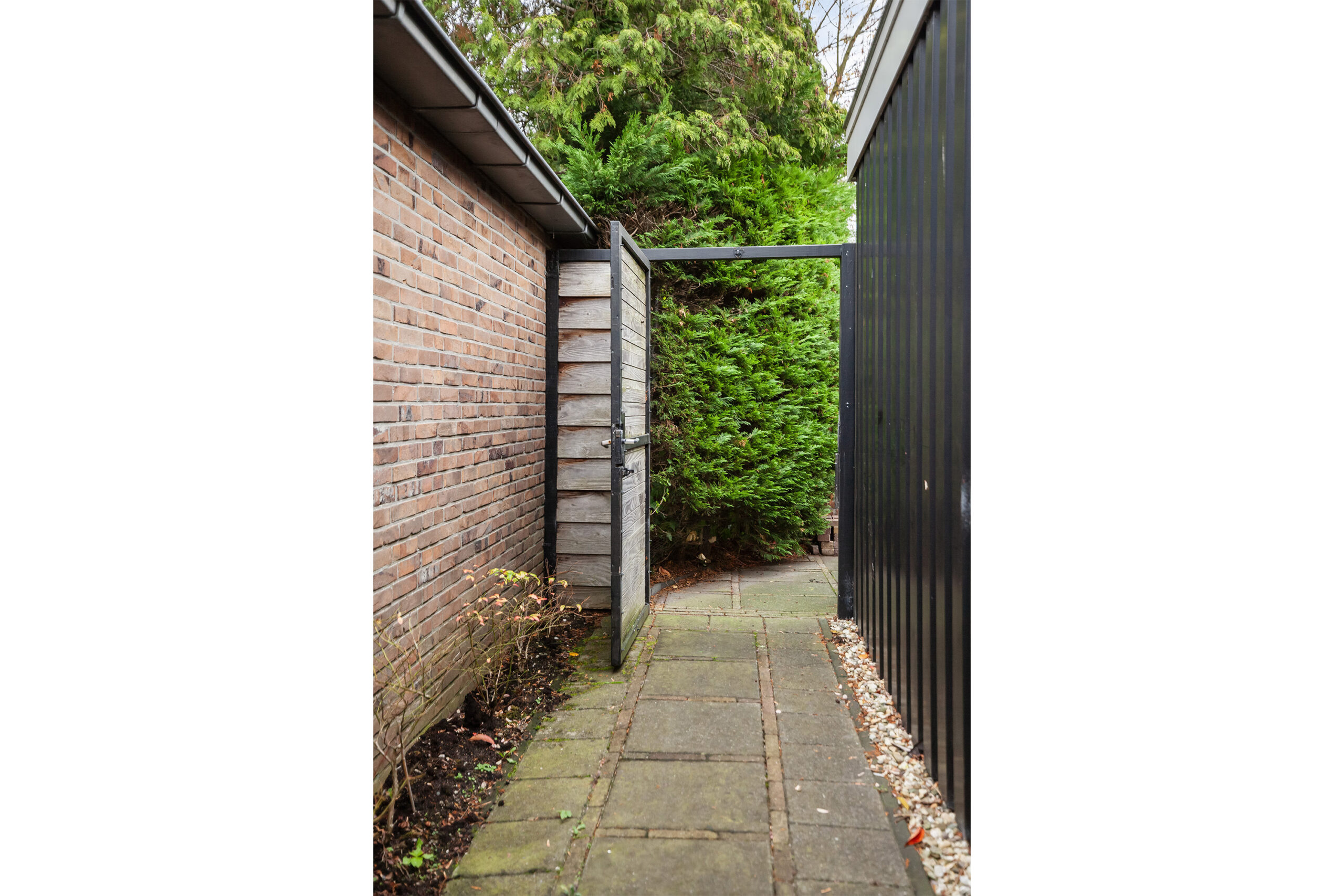 Achterin de tuin staat de stenen berging welke circa 2.73 x 2.52m groot is. Er is langs de coniferenhaag een achterpad met poort, zodat u gemakkelijk achterom kunt komen!