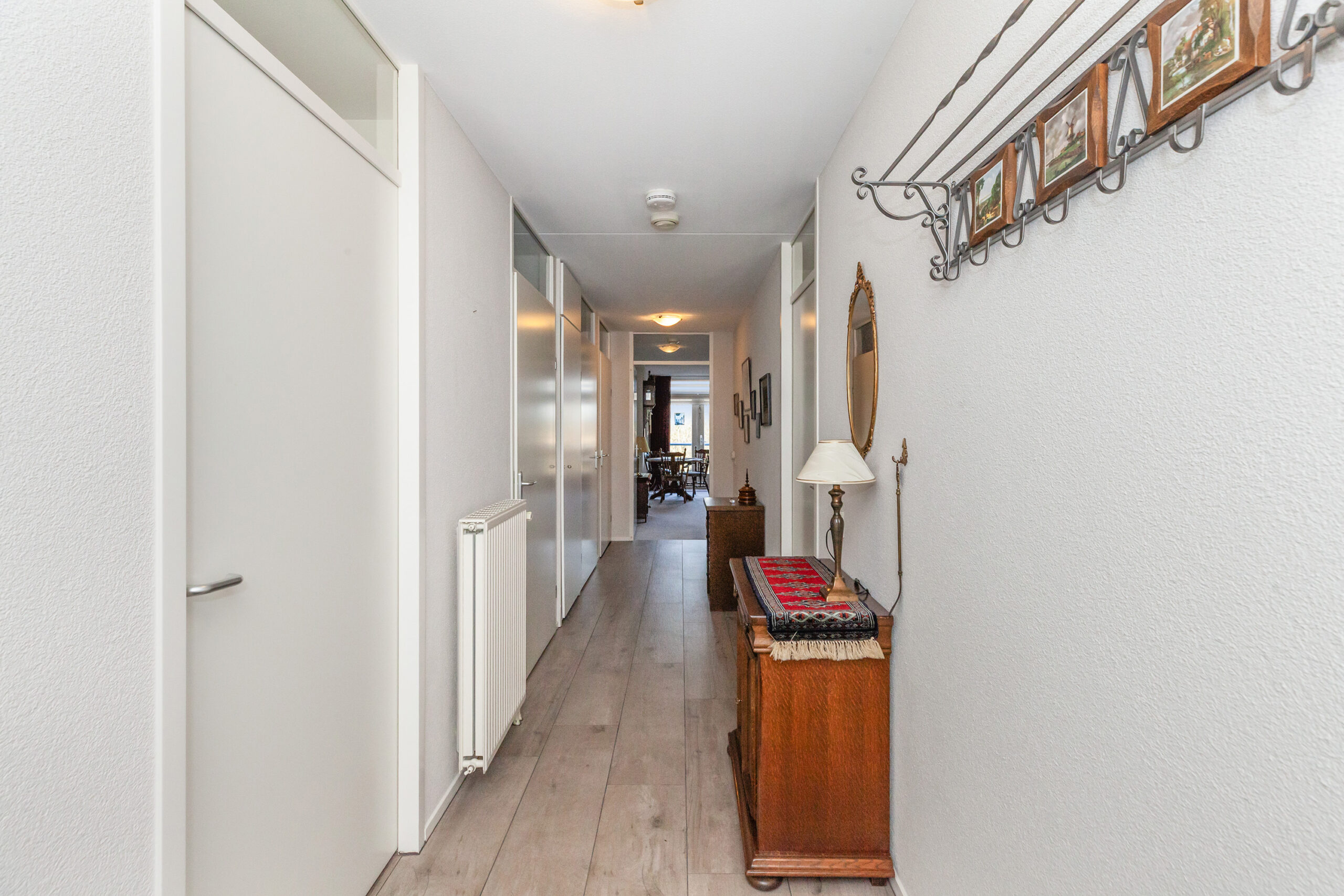De hal heeft een centrale plaats midden in het appartement, waaruit alle vertrekken toegankelijk zijn.