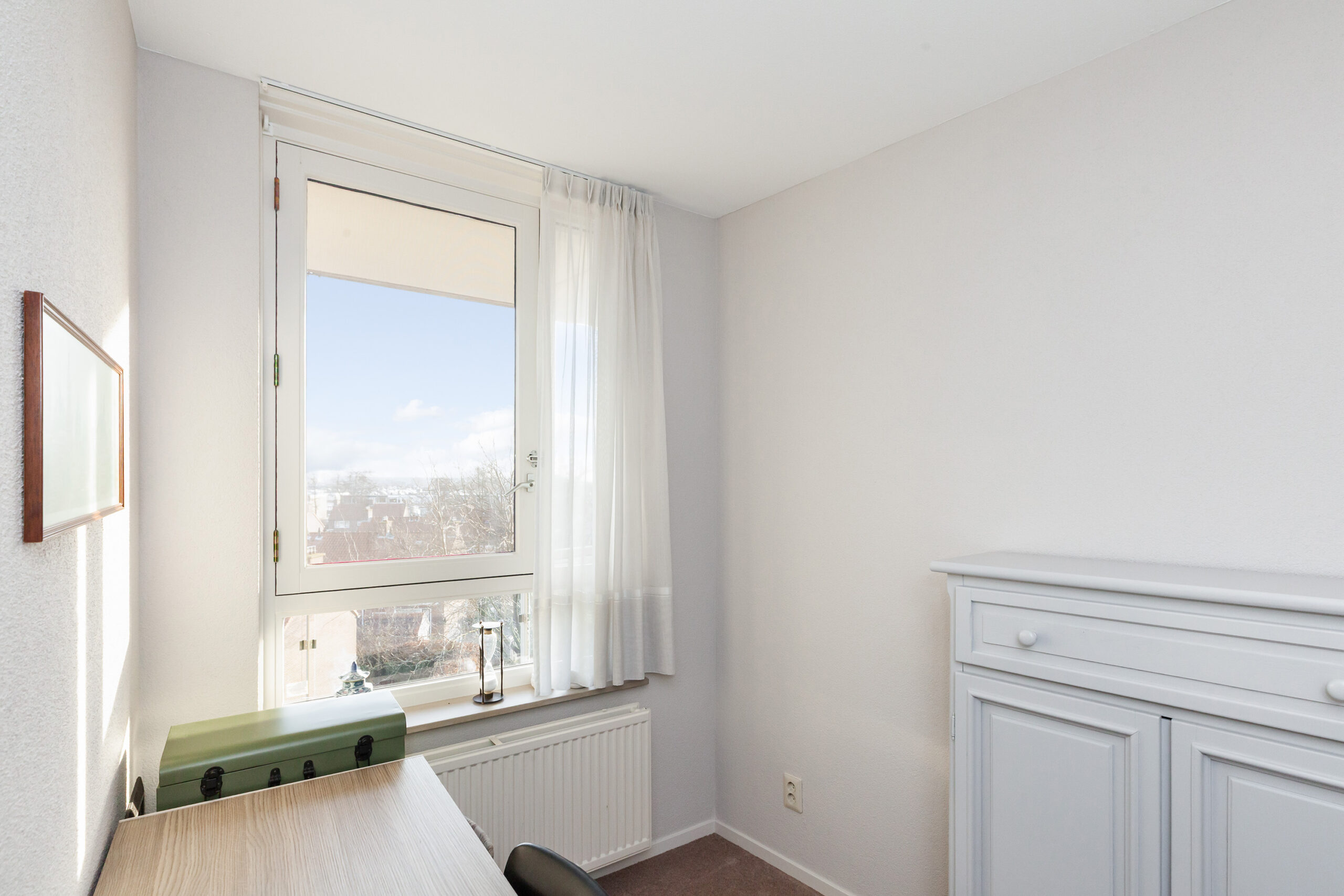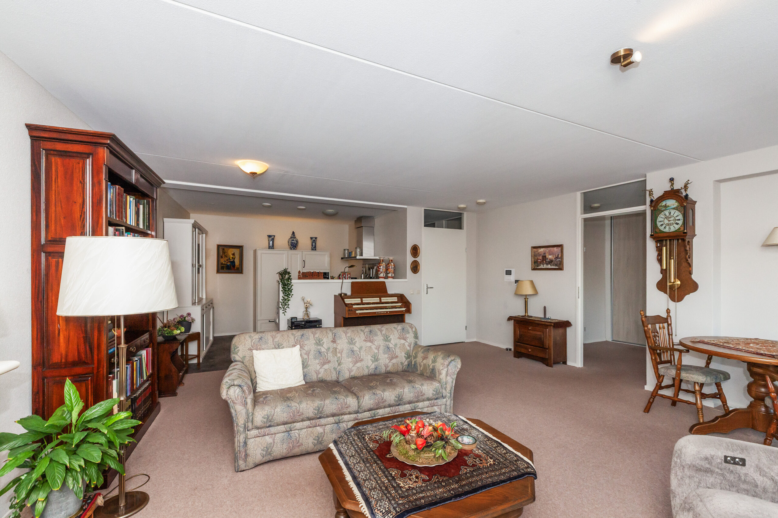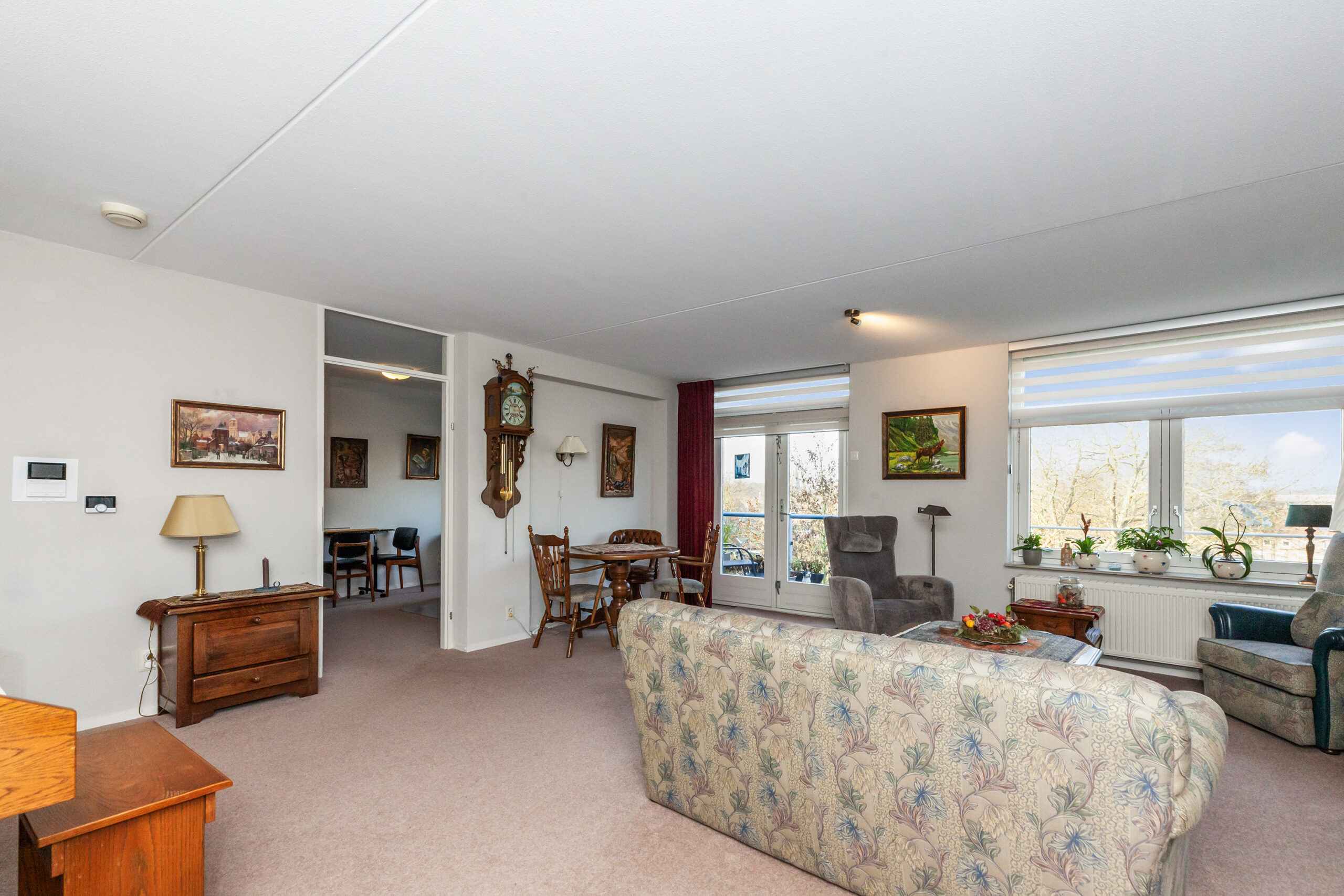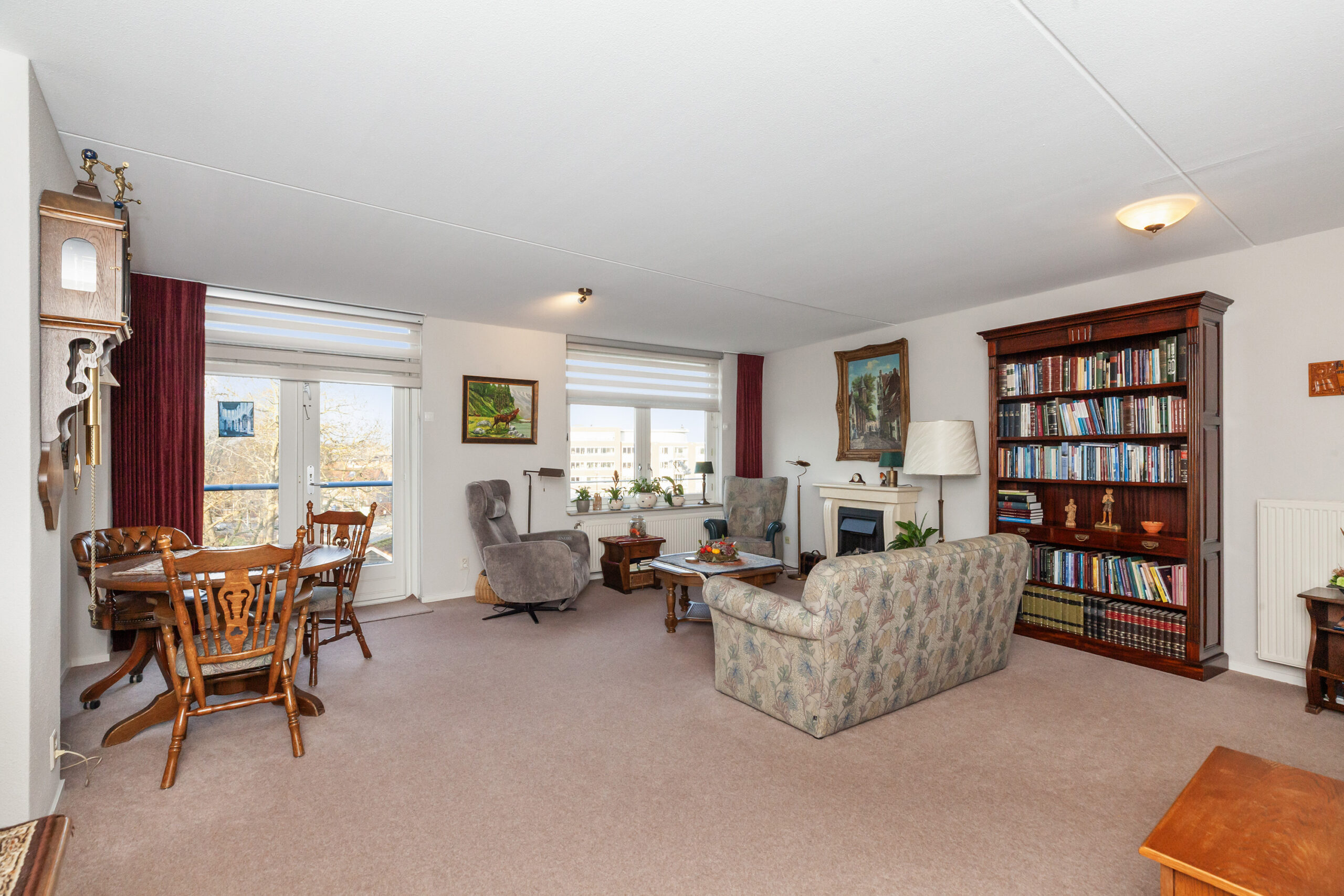 De woonkamer is ruim van opzet en biedt een prettig uitzicht over de omgeving. Via de twee openslaande deuren bereikt u het balkon van circa 3.71 x 2.02m. Aan de linkerzijde heeft u de toegang tot de slaapkamer en daarnaast staat de woonkamer in open verbinding met de aangrenzende keuken.