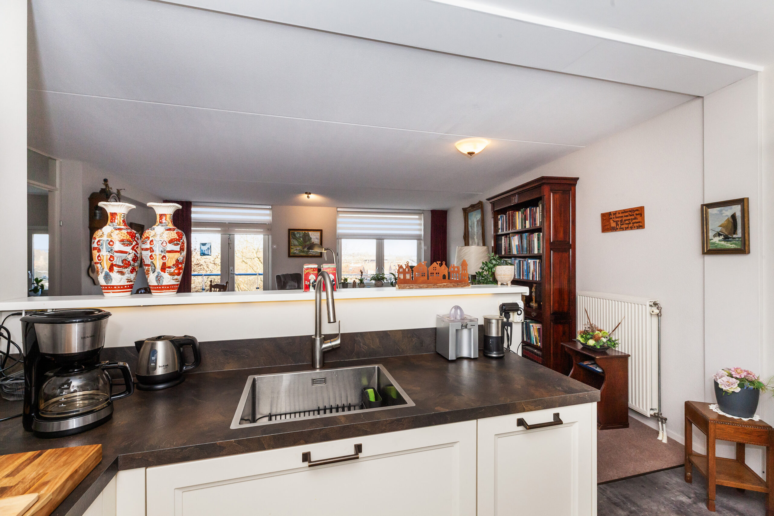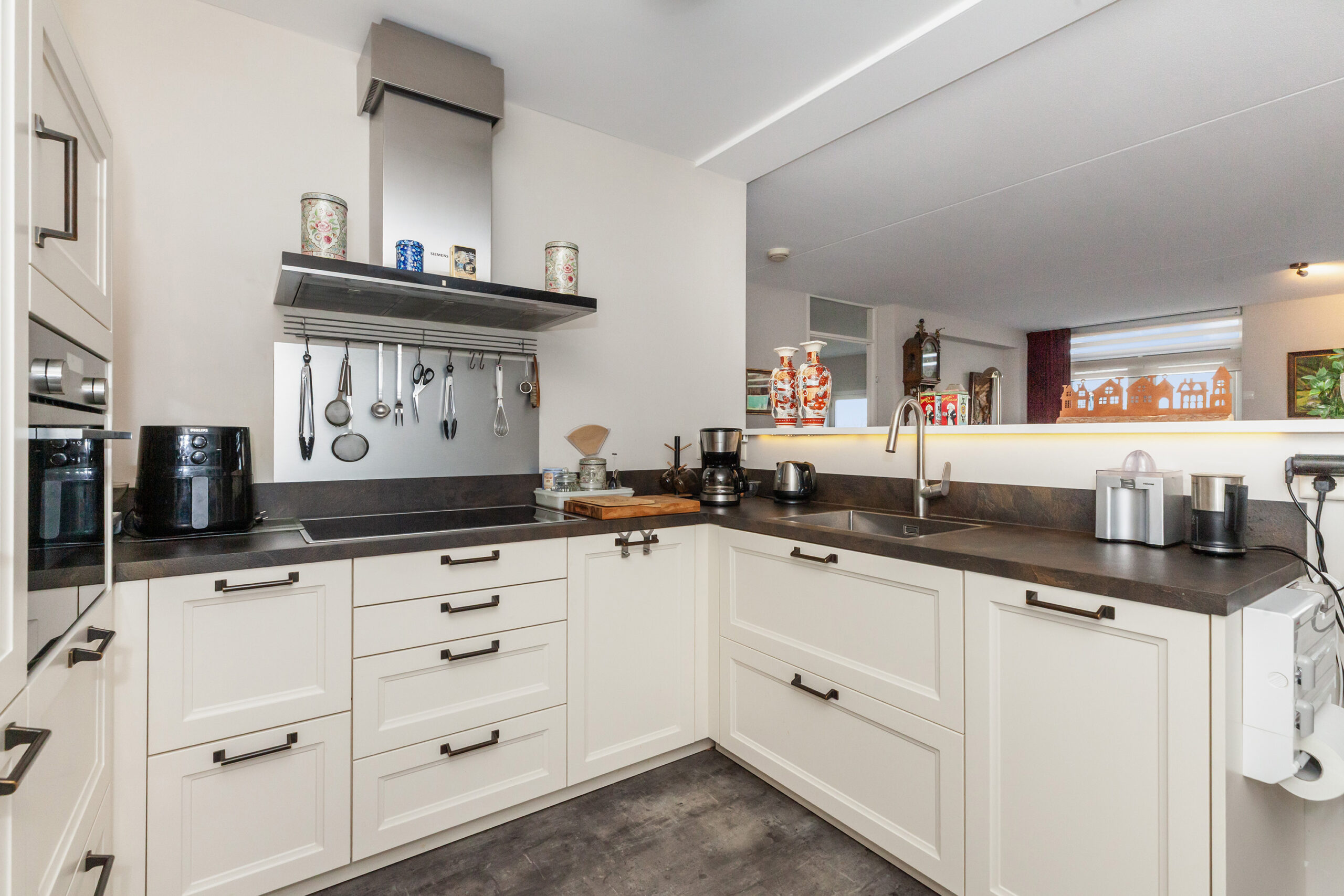 De keuken grenst aan de woonkamer en staat hiermee in open verbinding. In de U-opstelling heeft u alle denkbare gemakken, zoals een inductiekookplaat, afzuigkap, vaatwasser, combimagnetron, koelkast en spoelbak.