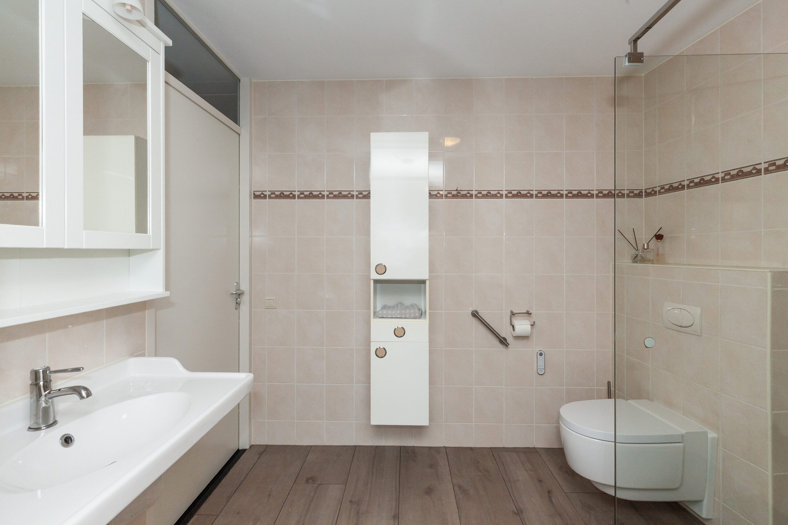 Vanuit zowel de hal, als slaapkamer I is er een deur naar de badkamer. U heeft de beschikking over een douche, toilet en wastafelmeubel. De badkamer en toiletruimte zijn in dezelfde stijl afgewerkt.