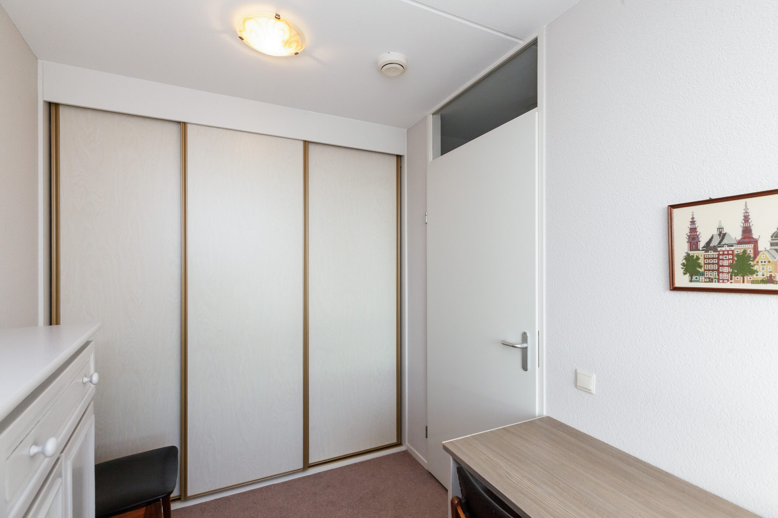Aan de voorzijde treft u deze slaapkamer en hier is eveneens een vaste kast.
