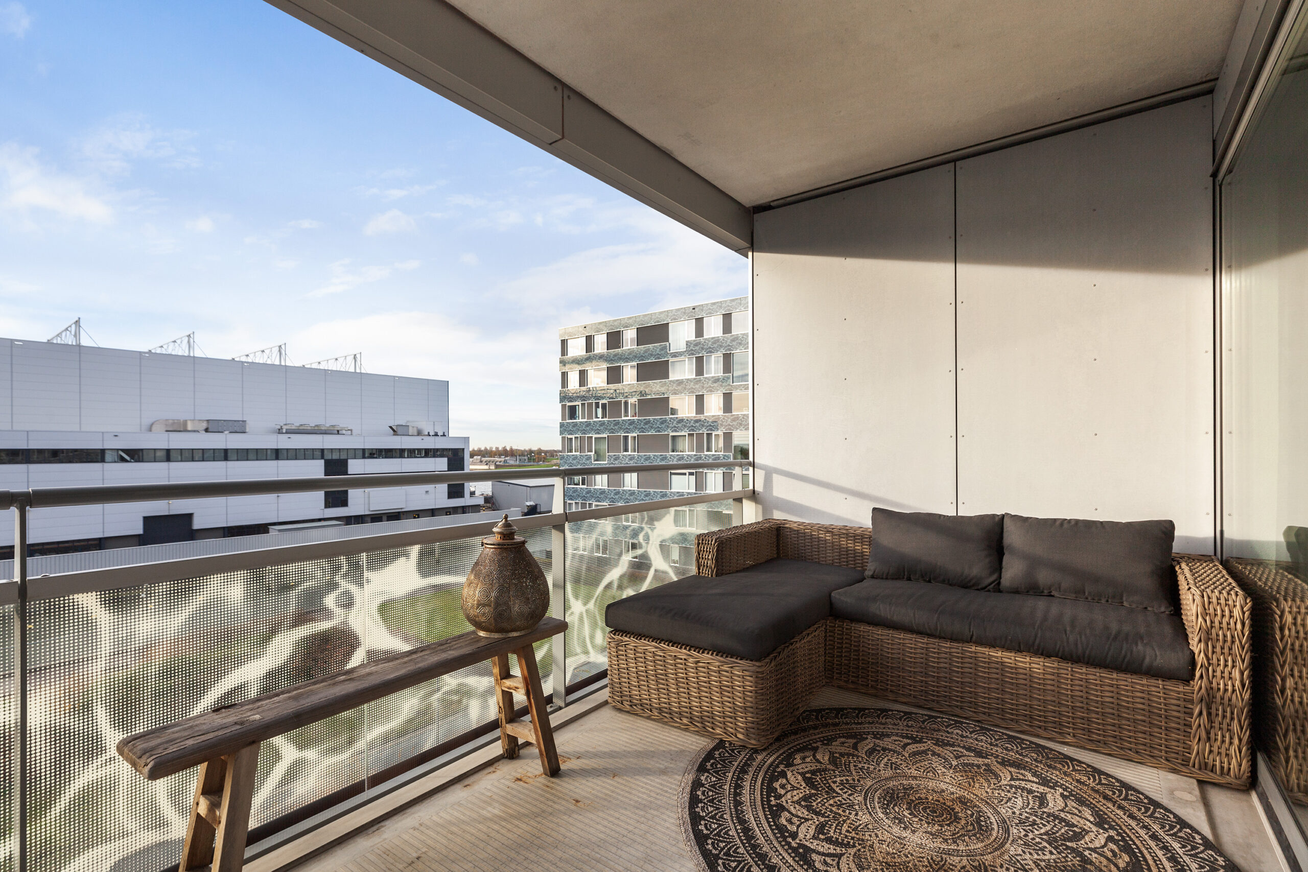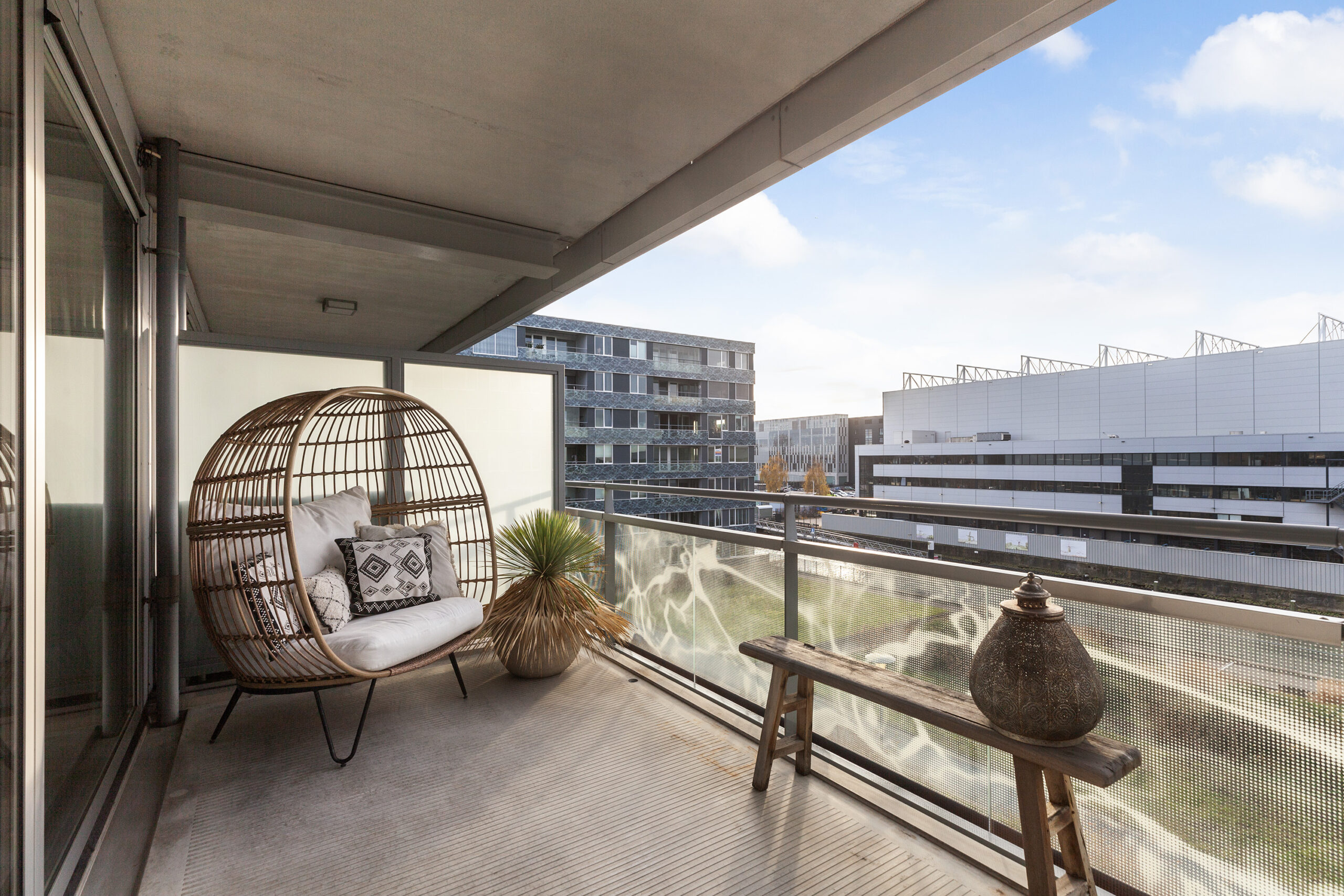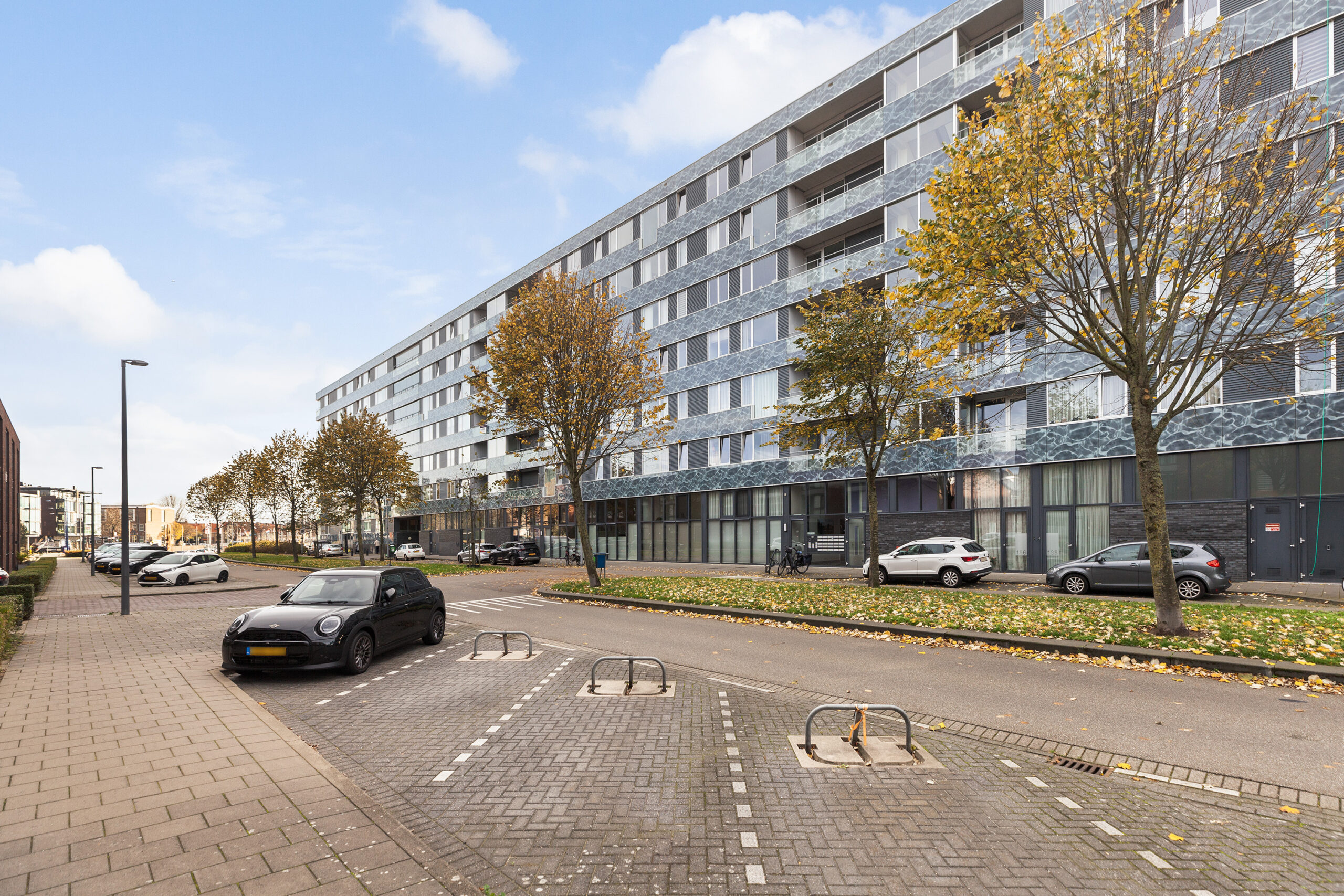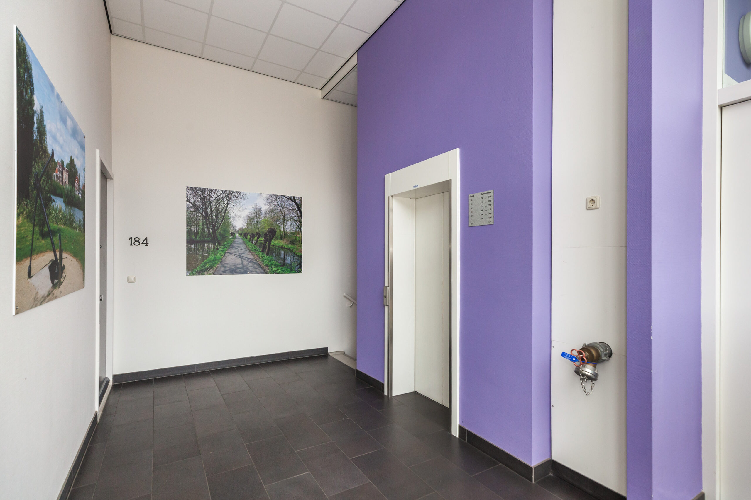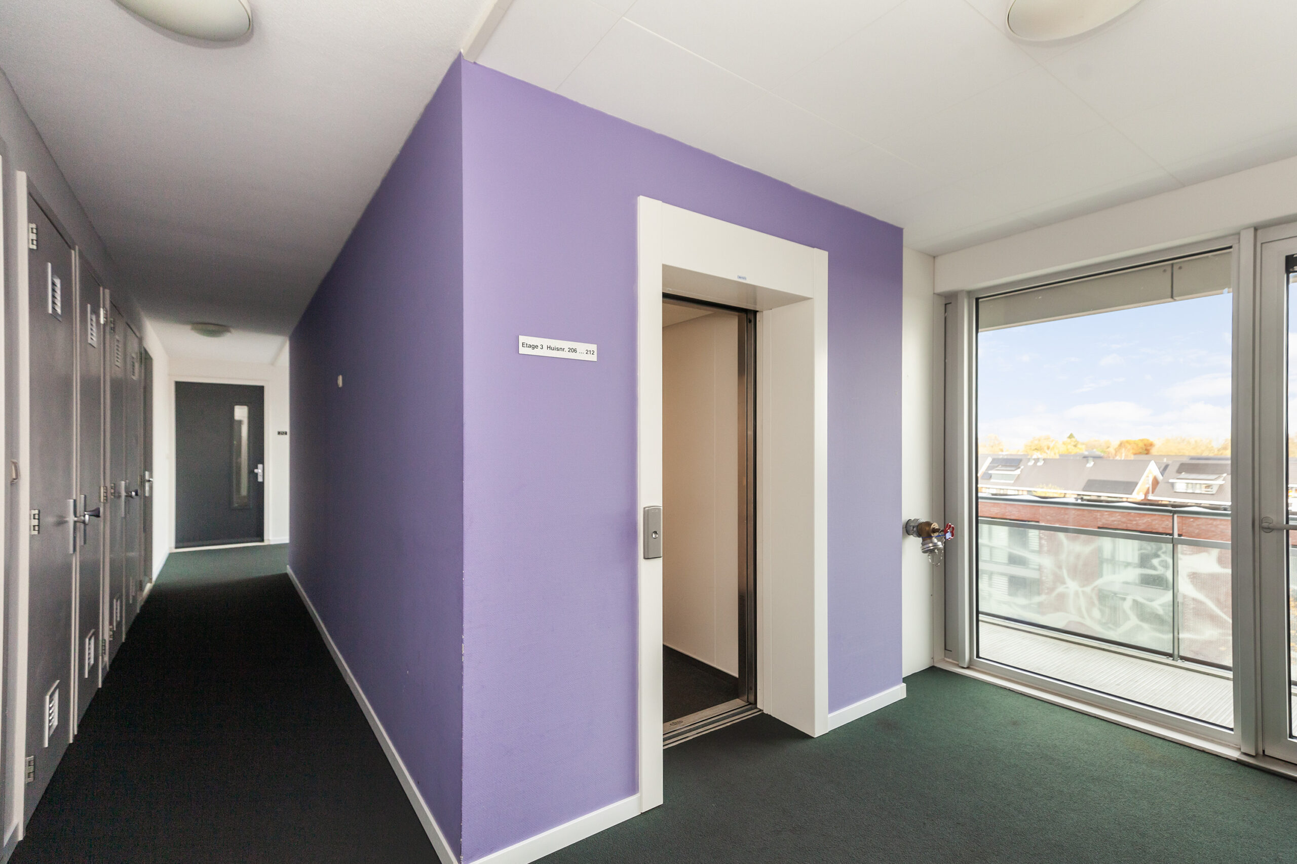 Het complex aan de Kraanbaan is een echte eyecatcher en alom bekend in Alblasserdam. Via de afgesloten portiek met brievenbus- en beltableau kunt u met de lift of de trap naar de derde verdieping van het appartement, of naar de parkeerkelder.