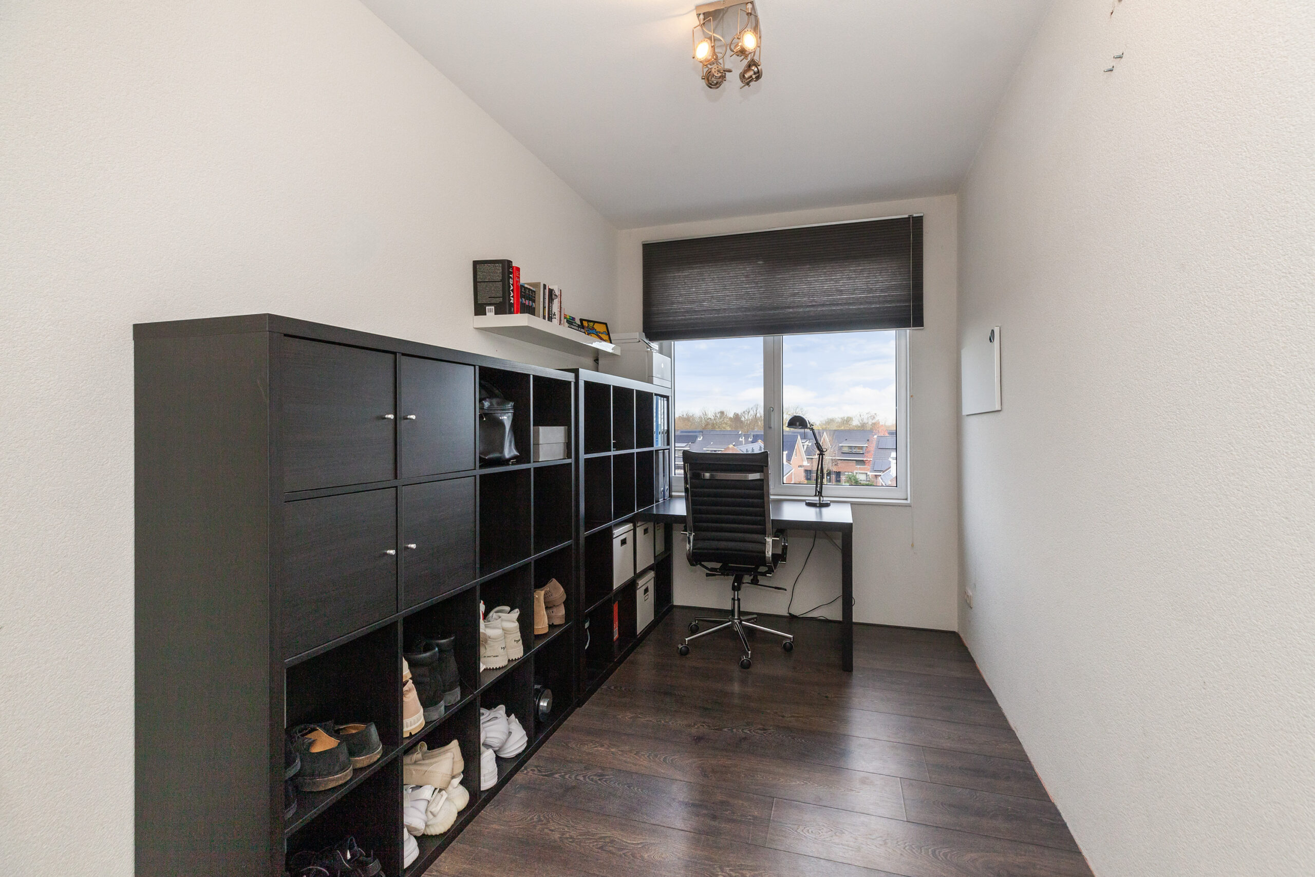 Deze tweede slaapkamer is eveneens aan de voorzijde gesitueerd, een praktische extra kamer voor een werk- of hobbyplek, of een logeé.