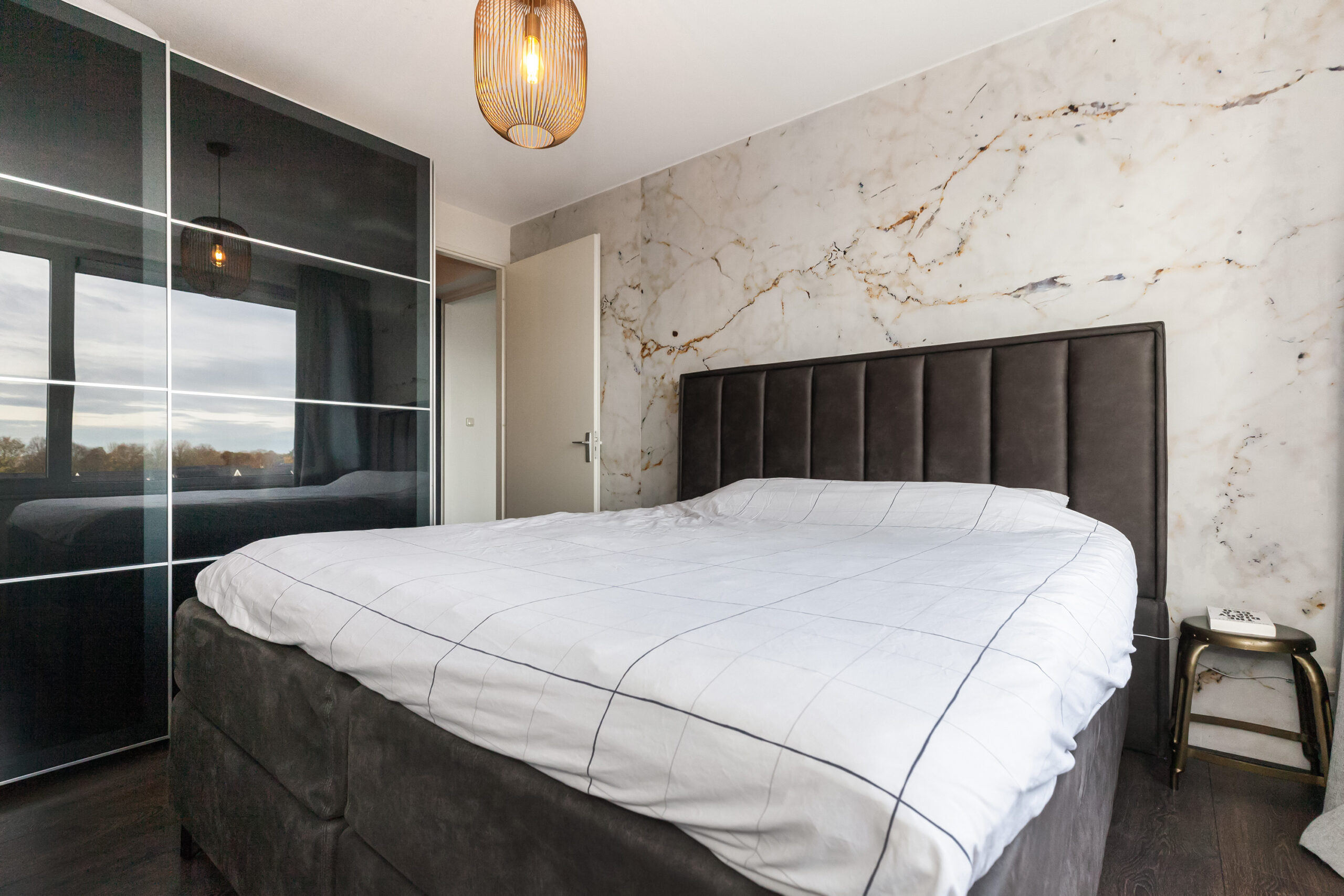 De (ouder) slaapkamer, de grootste slaapkamer treft u naar de voordeur.