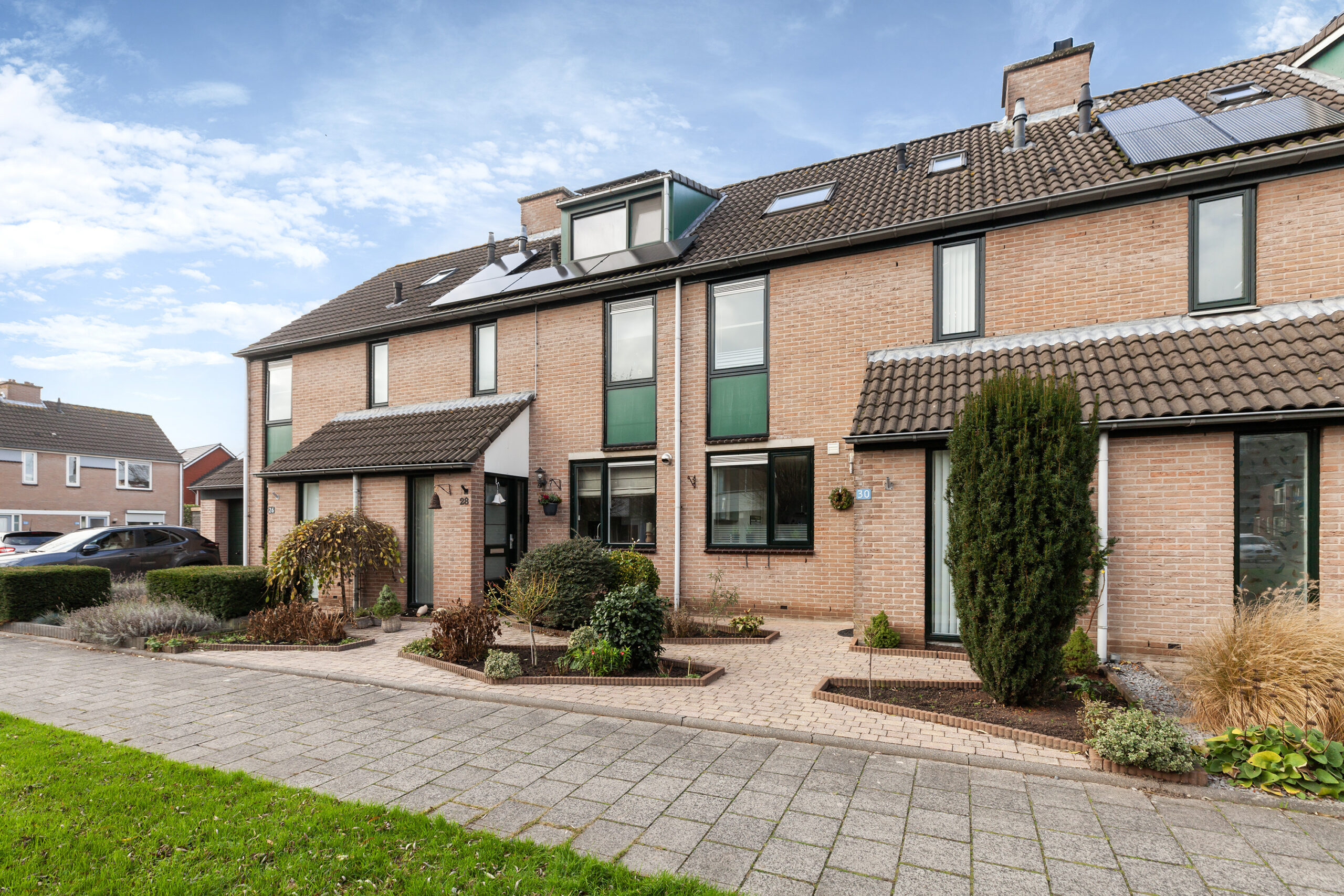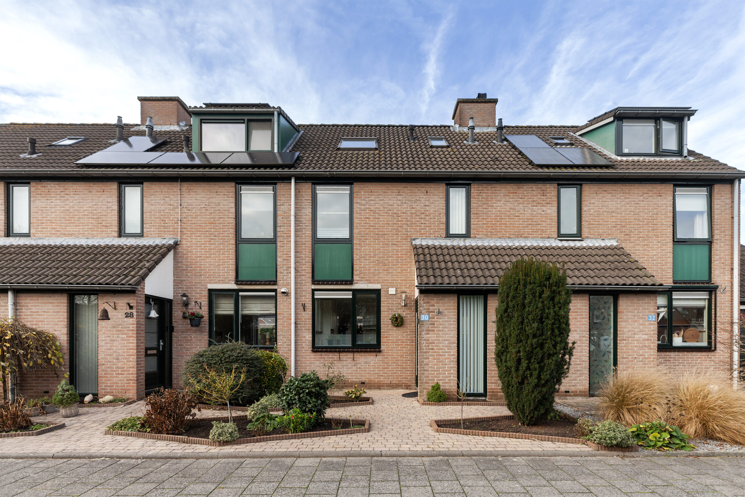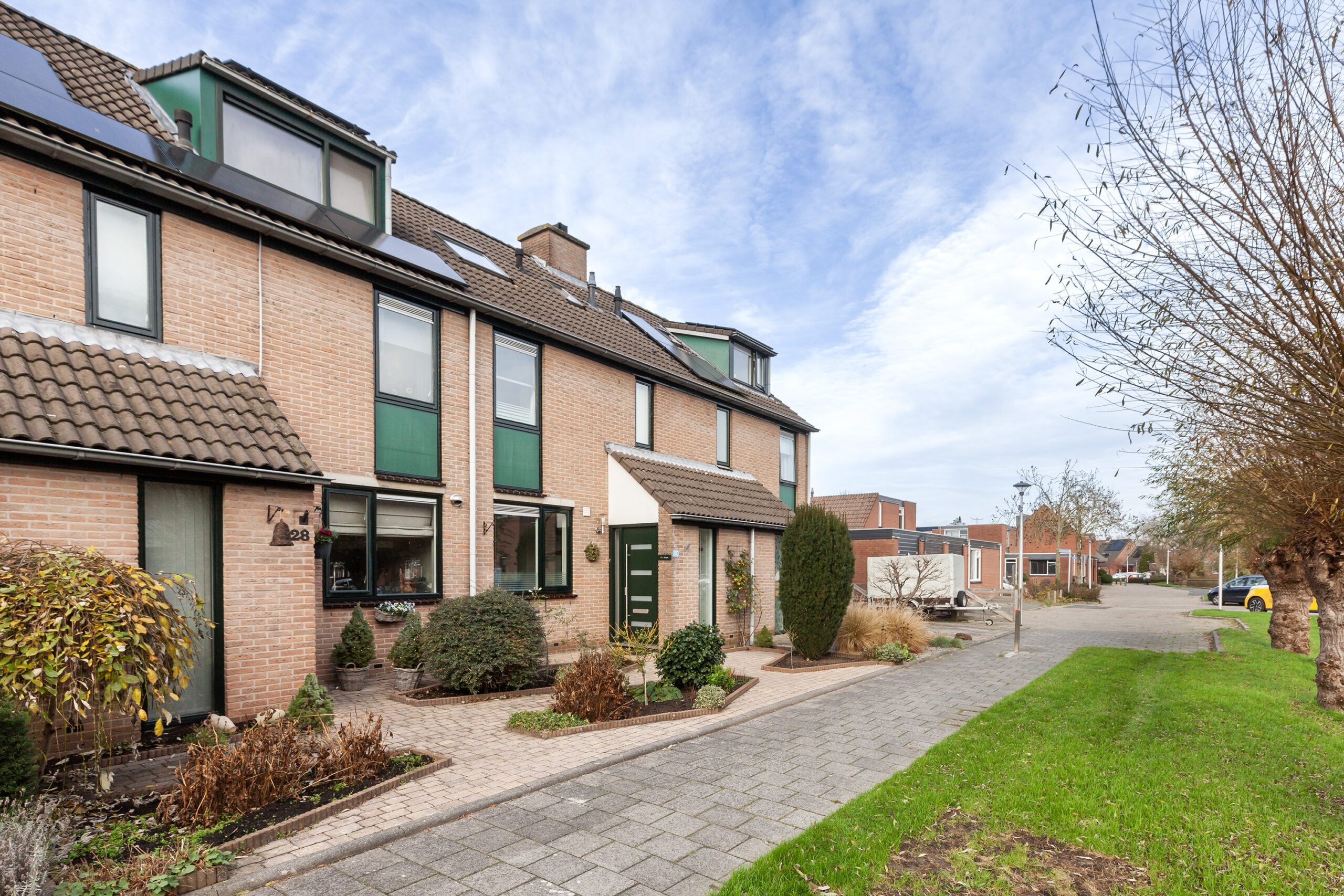 De ligging aan de voorzijde is heerlijk rustig doordat er een voetpad en groenstrook is. Voor de woning ligt een nette tuin en aangelegd met bestrating en diverse beplantingen in de plantenborders.
