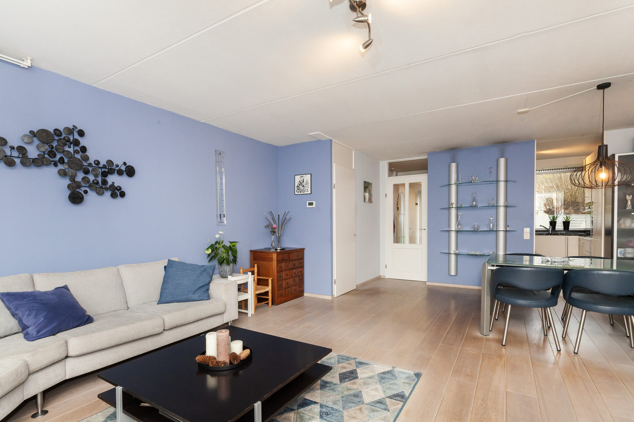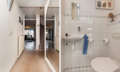 In de ontvangstruimte heeft u de toiletruimte, meterkast, trap naar de verdieping en toegang tot de woonkamer.