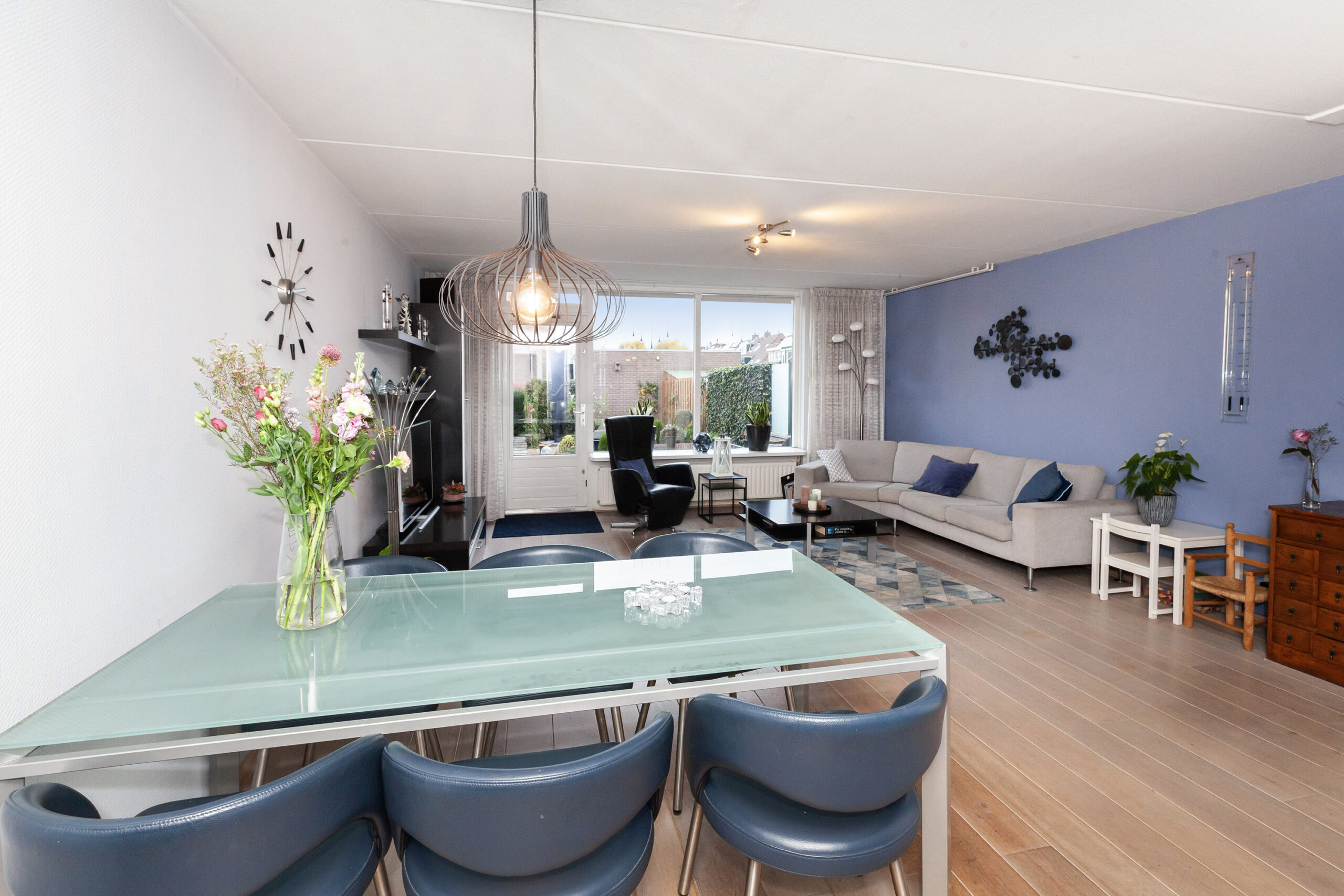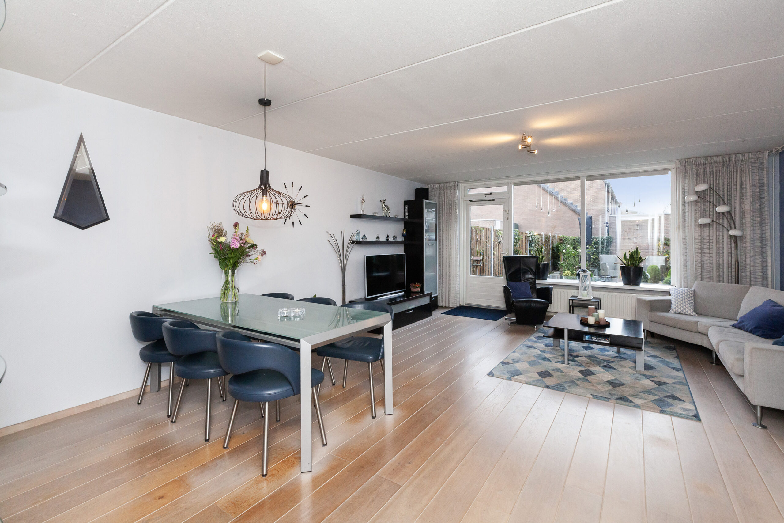 Welkom thuis! Wat een heerlijke woonkamer betreedt u vanuit de hal. Doordat deze uitgebouwd is, is hier aanzienlijk meer leefruimte ontstaan en heeft u alle plaats voor een gezellige zit- en eethoek te creëren. Via de achterdeur kunt u naar de tuin en onder de trap is een ruime inloopkast waar u allerlei spullen kunt opbergen.