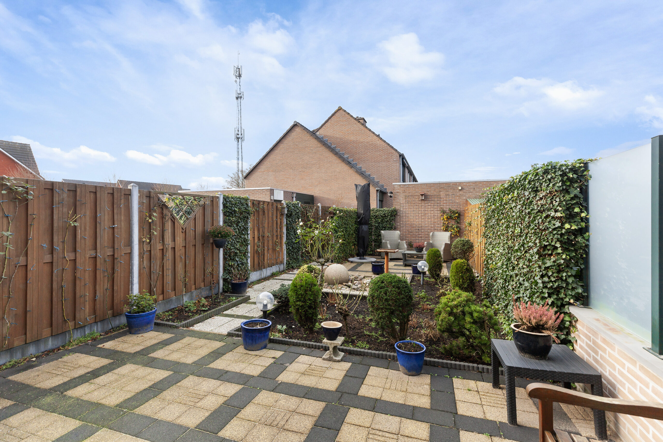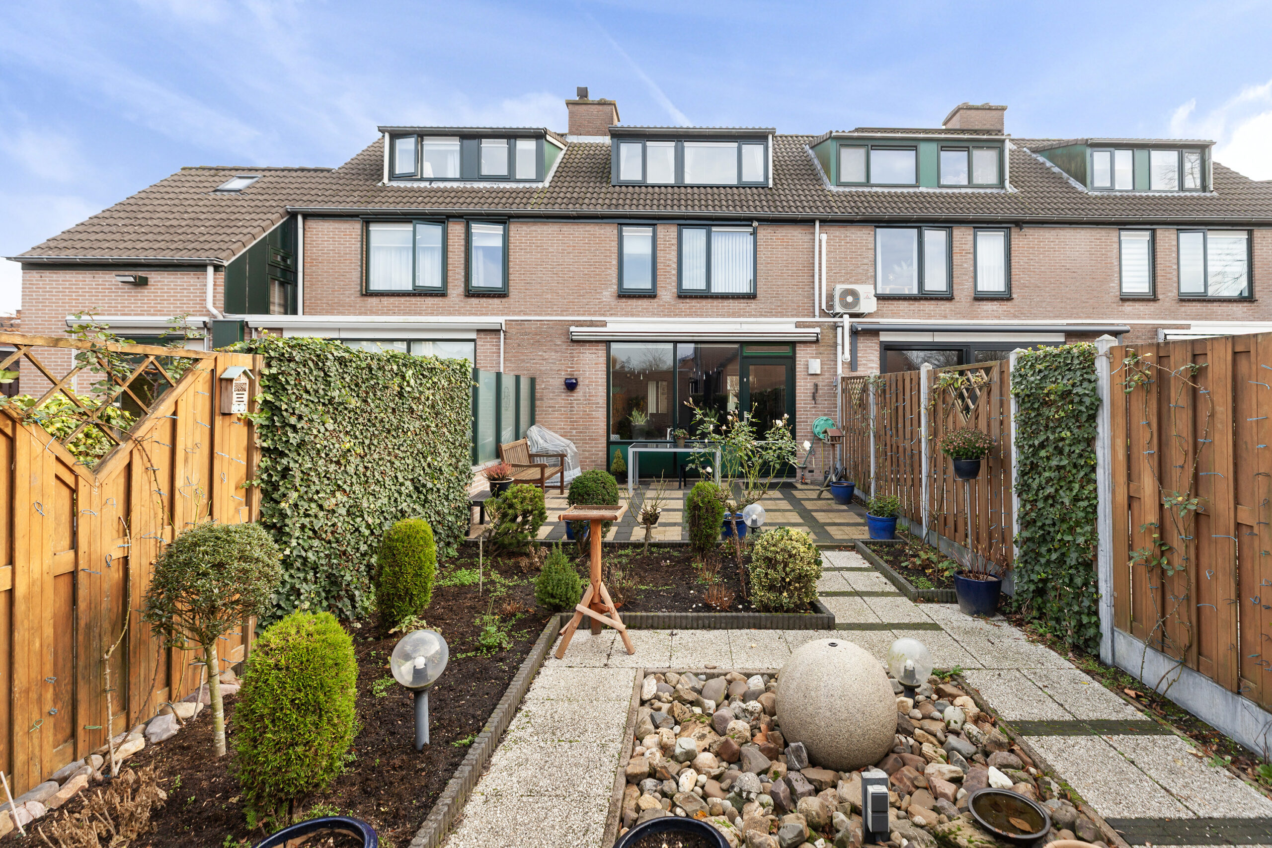 Via het achterpad kunt u achterom komen bij de woning en achter de groene haag kunt u gemakkelijk de containers bijv. plaatsen.