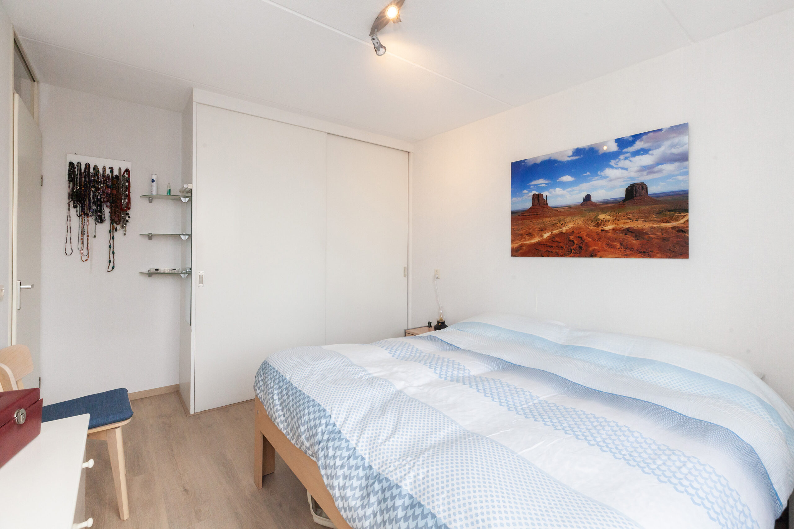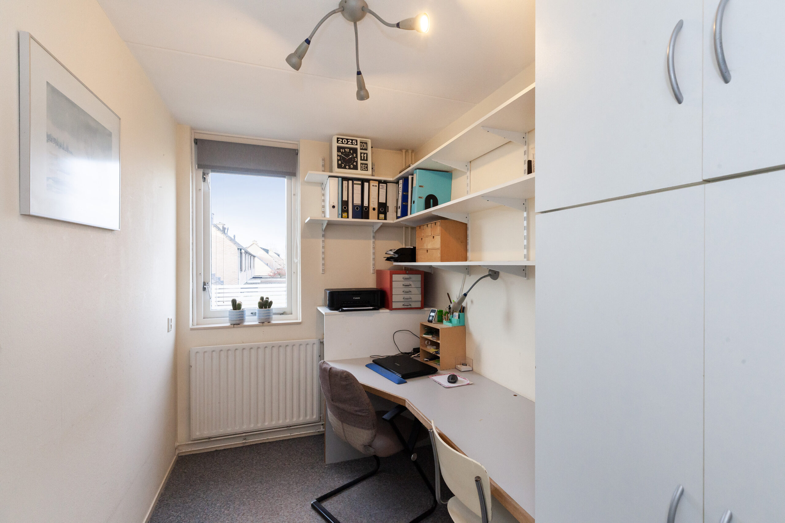 De derde slaapkamer is eveneens een ruime kamer en ook voorzien van een vaste kast.