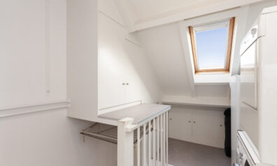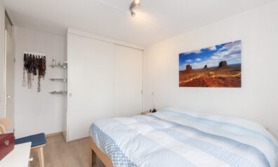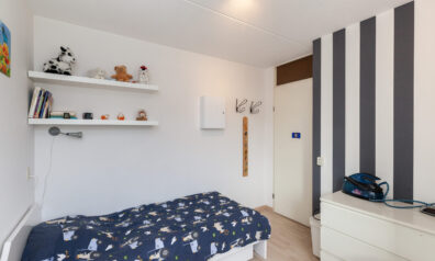 Aan de achterzijde over de volle breedte is deze vierde slaapkamer gesitueerd. Mede door het grote dakkapel is dit een ruime kamer. Diverse inbouwkasten geven u veel gemak.