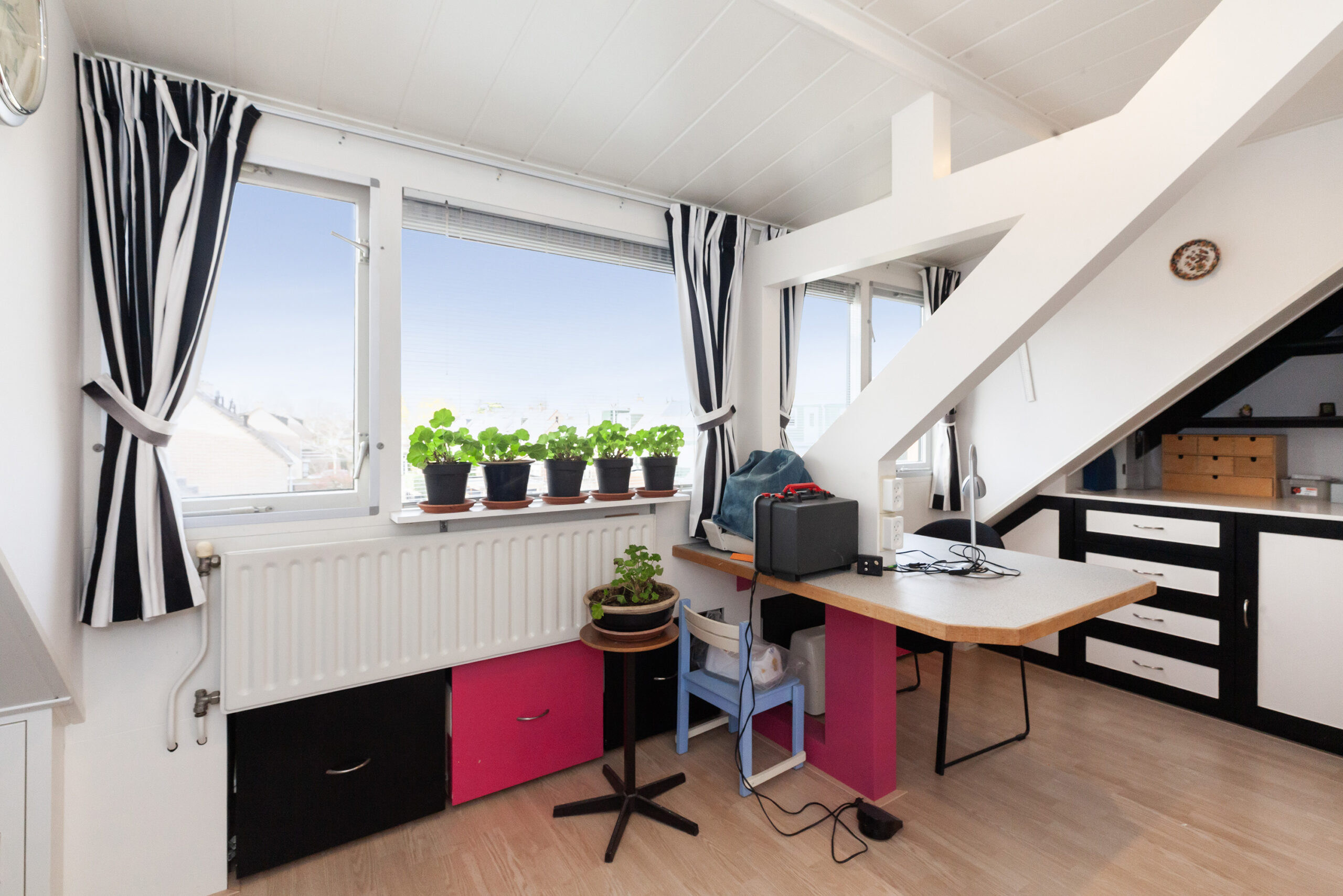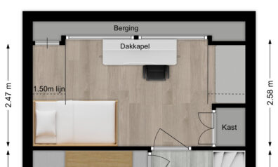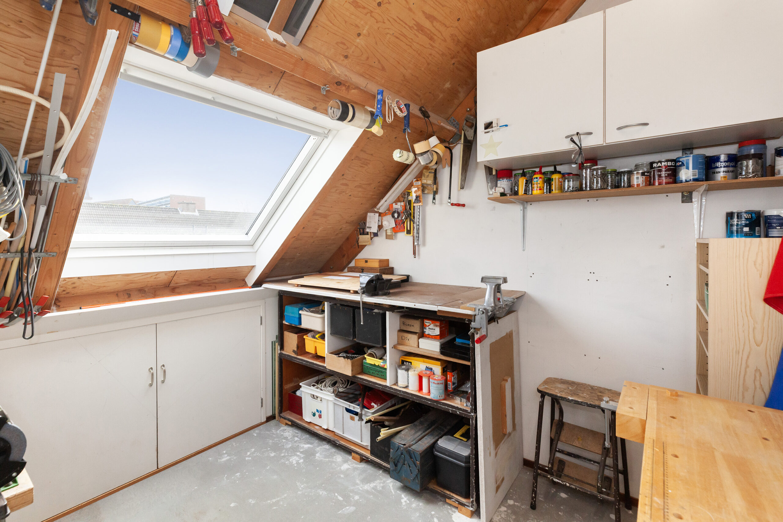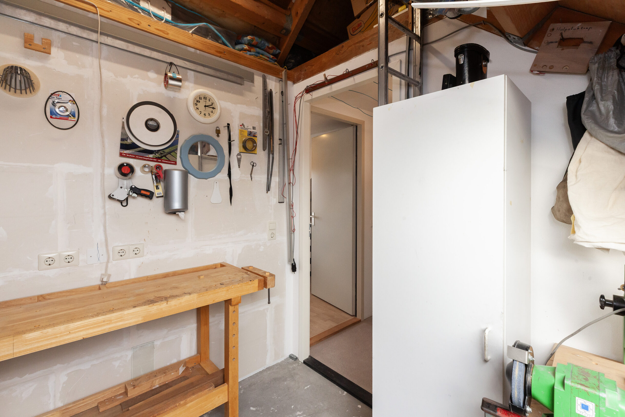 Momenteel is deze kamer in gebruik als werkruimte. Maar als u hier een mooie vloer in legt en de wanden afwerkt met een leuk behang heeft u gemakkelijk een slaap-, werk- of hobbykamer gecreëerd. Boven de overloop is een vliering waardoor u extra bergruimte heeft.