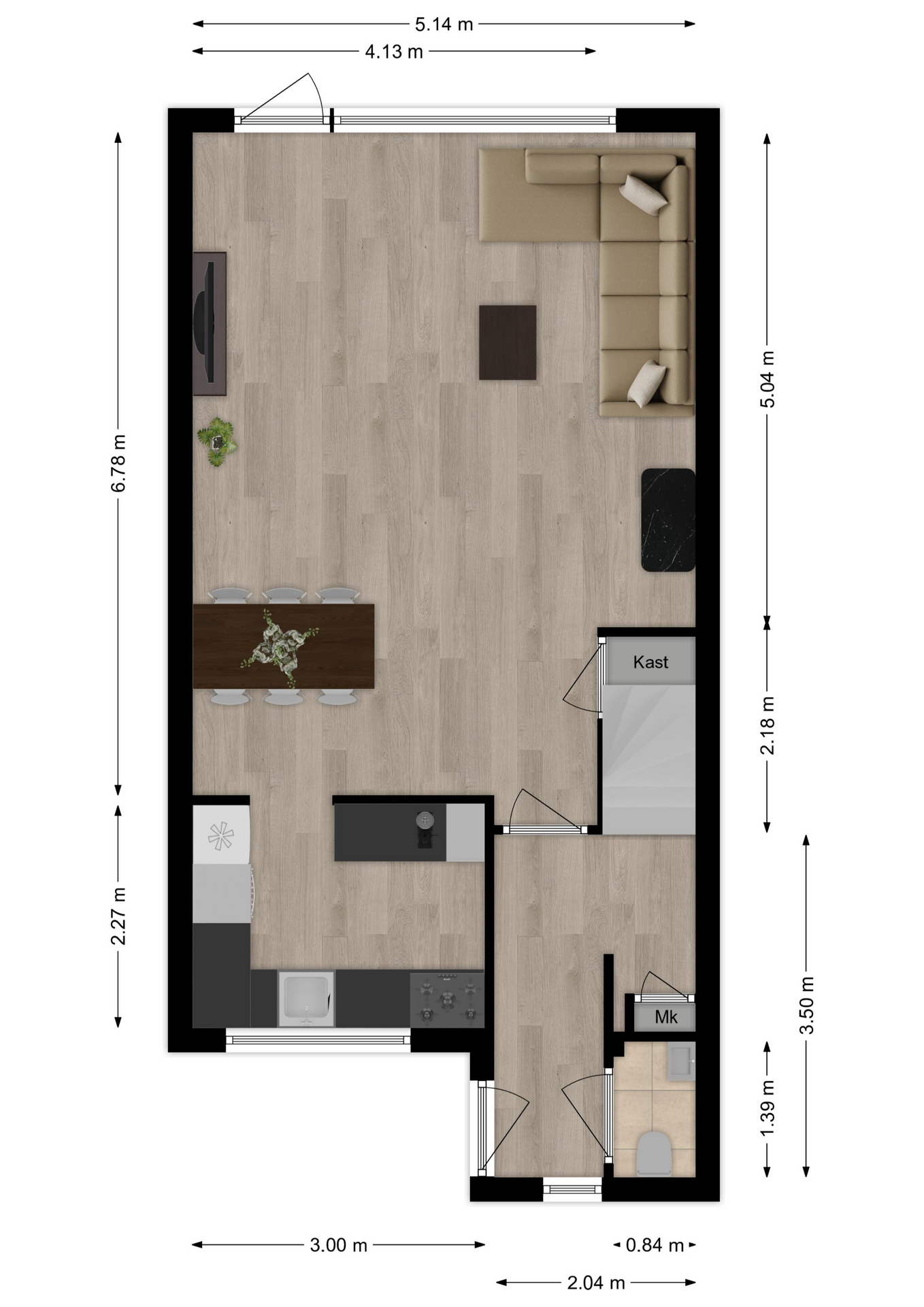 Maatvoering: Circa 5.14 x 2.58/2.47m