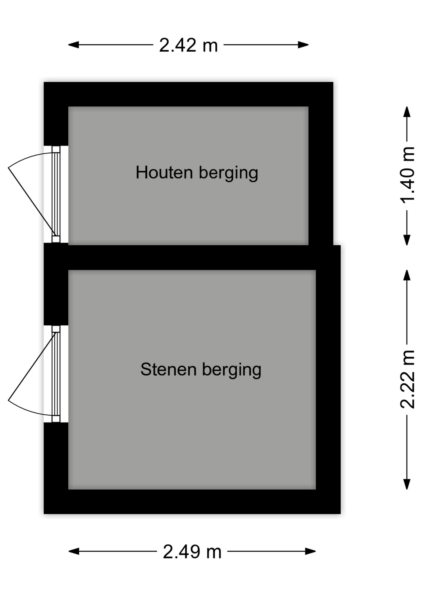 Achterin de tuin staat een stenen berging van circa 2.49 x 2.22m met erachter nog een houten berging van circa 2.42 x 1.40m.