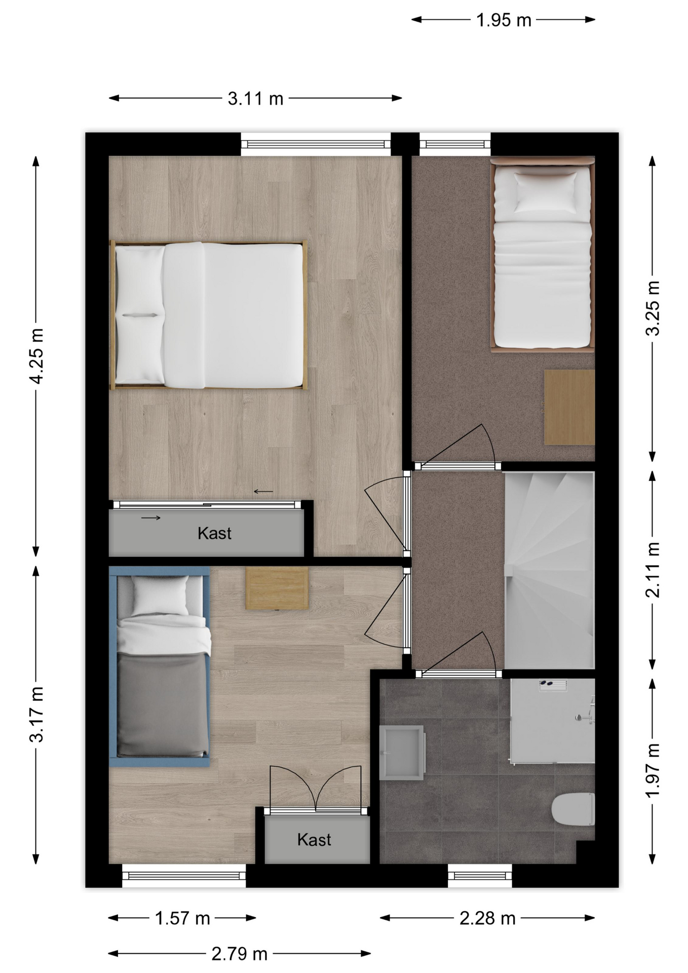 Maatvoering: Circa 3.18 x 3.11/2.79m